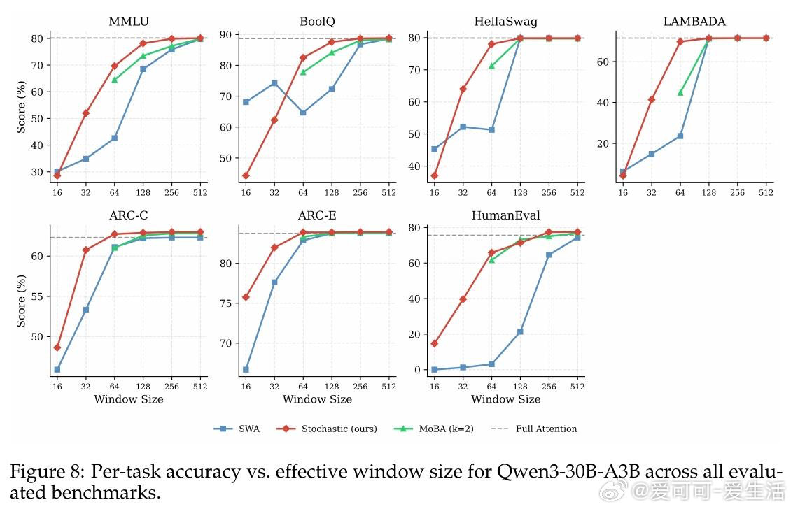 在高效注意力机制领域,如何让每个 token 以线性代价触达序列全局,是一个长期未解的难题。滑动窗口注意力(SWA)将感受野锁死在局部窗口内,ℓ 层后仅能覆盖 ℓw 个位置;要跨越这一瓶颈,现有方案不得不引入全局 token、手工稀疏模式或块级路由等额外复杂度。