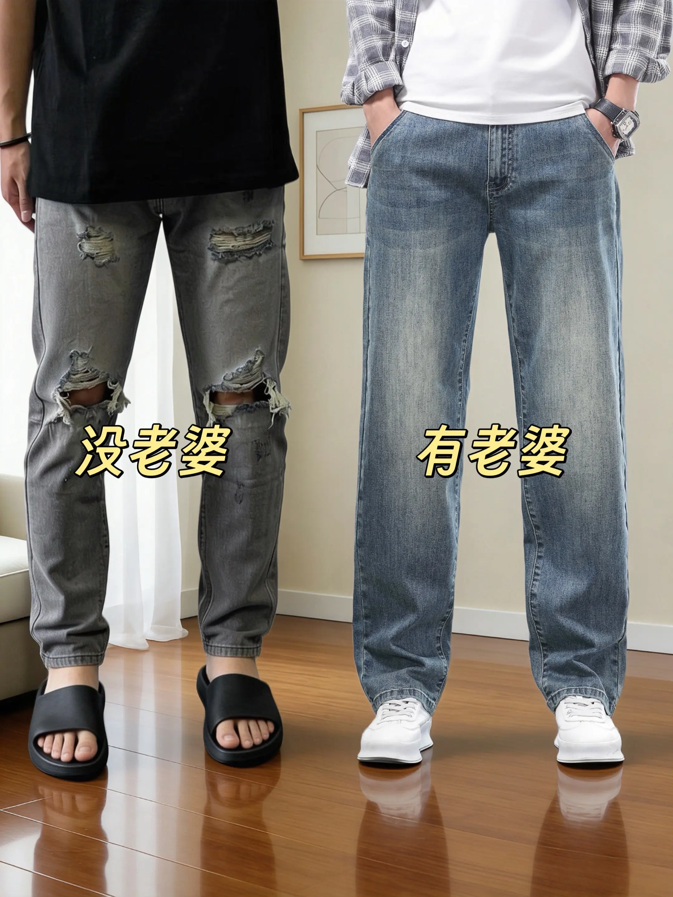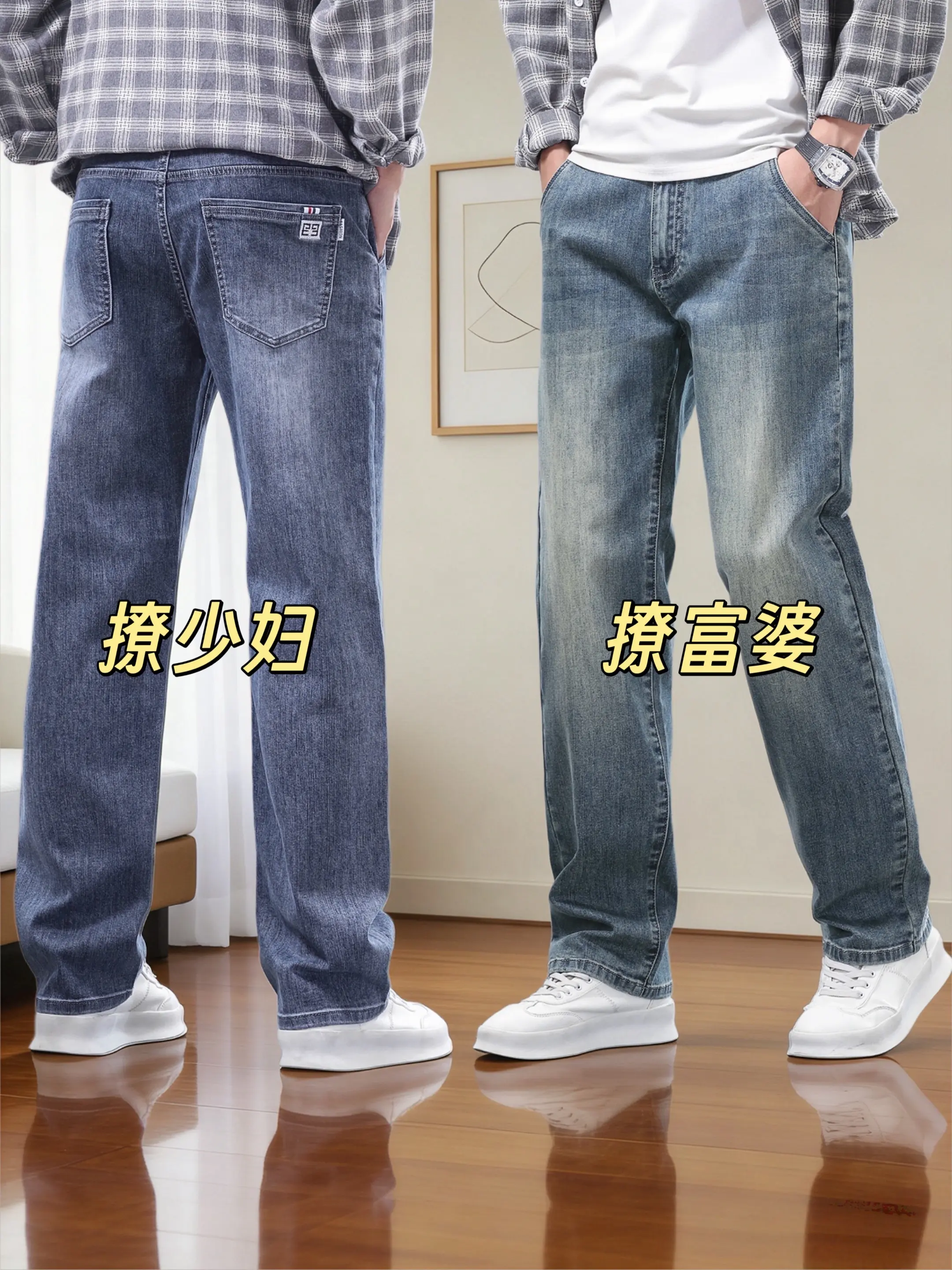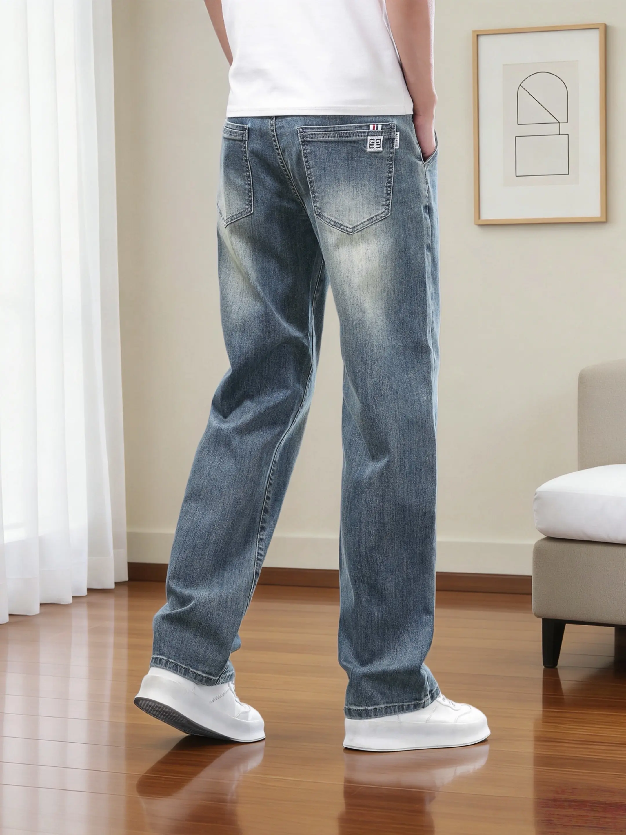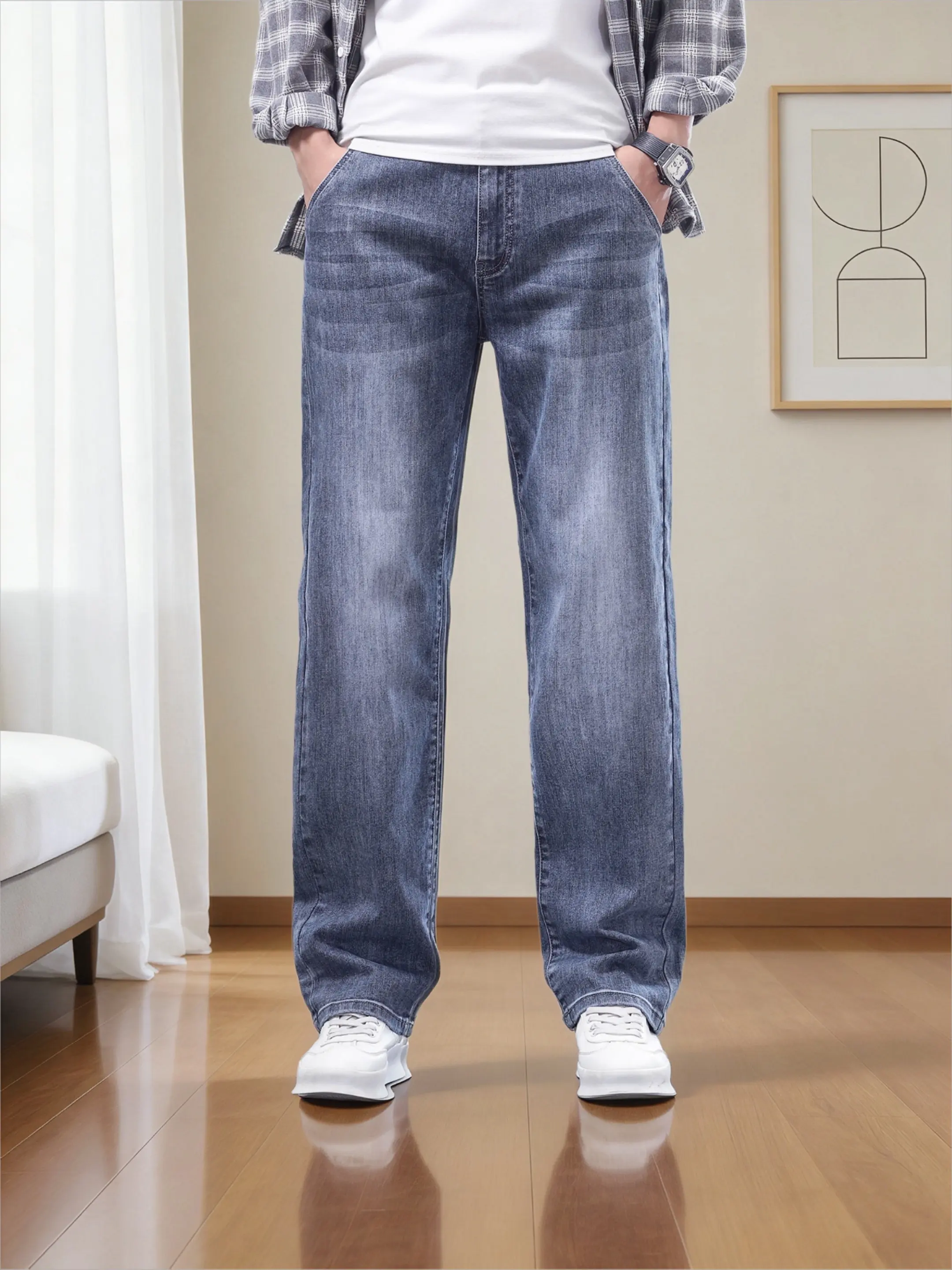 阔腿垂感牛仔裤男款 男士经典直筒阔腿牛仔裤 直筒微阔牛仔裤 宽松直筒微...