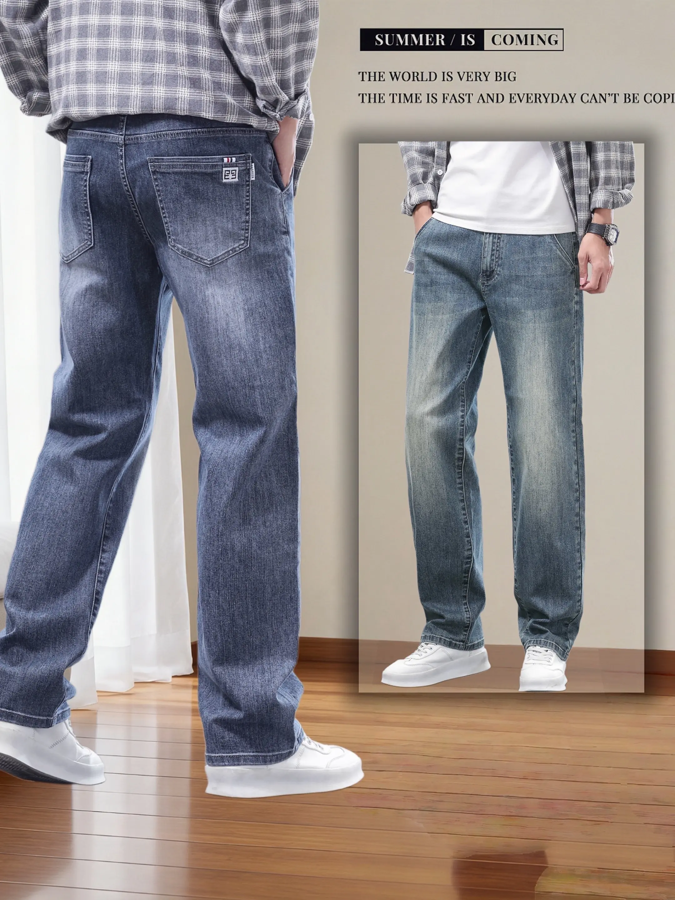 阔腿垂感牛仔裤男款 男士经典直筒阔腿牛仔裤 直筒微阔牛仔裤 宽松直筒微阔牛仔裤 男裤牛仔裤宽松直筒