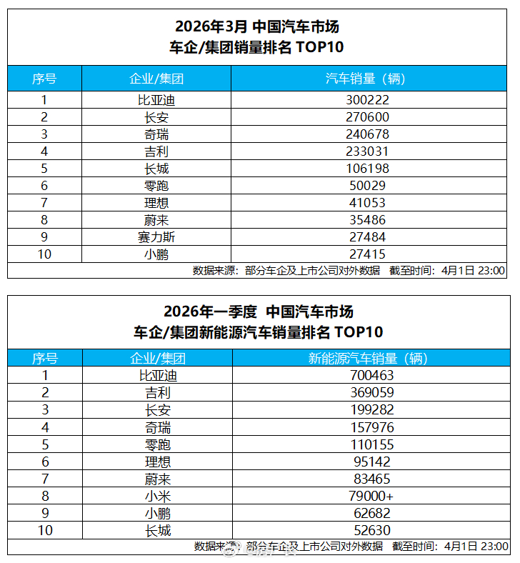 比亚迪3月销量出来了,超过30万辆,平均每天卖近1万辆,每8秒就有一辆新车找到主人。这已经是它连续58个月当中国新能源销冠了,整整五年没让过位。最惊喜的是海外市场,三月份卖了近12万辆,这回没人说比亚迪只会在国内卷了吧。从具体数据来看,比亚迪打法很清晰:王朝海洋走量,方程豹抢越野性能,腾势攻豪华,仰望树高端标杆。从海鸥这种几万块的代步神车,到仰望百万级豪车,全都卖得动,这种“全价位通吃”的能力无敌。随着刚发布的第二代刀片电池、闪充技术、天神之眼B智驾全面普及,比亚迪树立新能源汽车新标杆 ,技术壁垒越筑越高,一季度卖了近70万辆,二季度肯定还要继续冲。智驾数码团