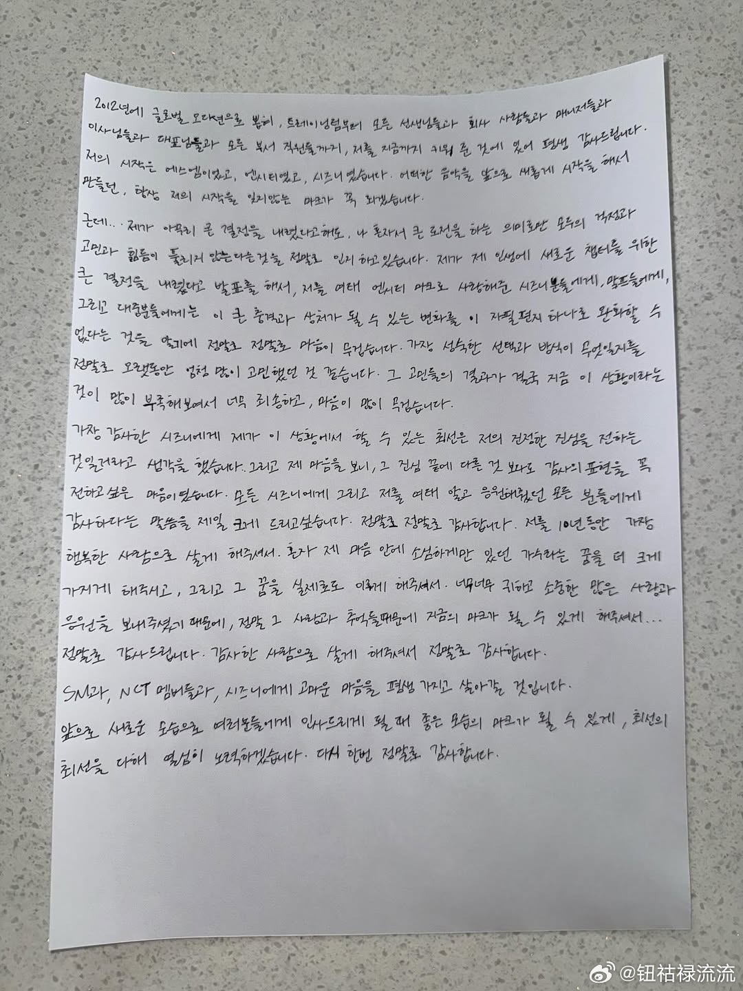 李马克手写信李马克解约退团李马克上传手写信 在这10年里,以最深刻的方式看见和经历这个世界,走过了一段无比珍贵的旅程,也让我自然而然地开始思考——我能够拥有的最好的梦想是什么、作为“Mark”这个人活着,我能去做的最有意义的事情和人生的目的究竟是什么。正好是在这段10年合约即将结束的时刻,我唤醒了内心所有的感受,经过了长时间的思考,最终变得非常好奇——那个梦想完整、清晰的样子到底会是什么,也让我产生了想要全身心投入、真正去“跳进去探索”的强烈渴望。无论是我的音乐,还是我最终结出的“果实”会是什么,以及要如何把它呈现给这个世界……我都想真正去找到答案,并且一定要去实现它。……我和每一位成员都进行了很多交流,光是想起来就让人想流泪,最终真的没有一个人例外,所有成员都对我说会支持我。…我的起点是SM,是NCT,是西珍妮。无论未来开始怎样的音乐、创作怎样的作品,我都会成为一个永远不会忘记自己起点的Mark。但是……即使我做出了这样重大的决定,我也深刻地意识到,仅凭“我一个人去迎接新的挑战”的意义,是无法消解大家的担忧、苦恼和辛苦的。当我宣布为了人生新篇章做出重大决定时,我知道,仅凭这一封亲笔信,是无法缓解一直以“NCT的Mark”爱着我的西珍妮们、Mark的粉丝们,以及大众可能感受到的巨大冲击和伤痛的。我为什么才是最成熟的选择和方式,思考了非常非常久。最终呈现出的结果是现在的情况,看起来还很不足,对此我感到非常抱歉,心情也十分沉重。对我最感激的西珍妮来说,我认为在这样的情况下,我能做的最好的一件事,就是传达我最真实的心意。而当我审视自己的内心时,我发现,在这份真心的尽头,比起其他任何事情,我最想表达的就是感谢。