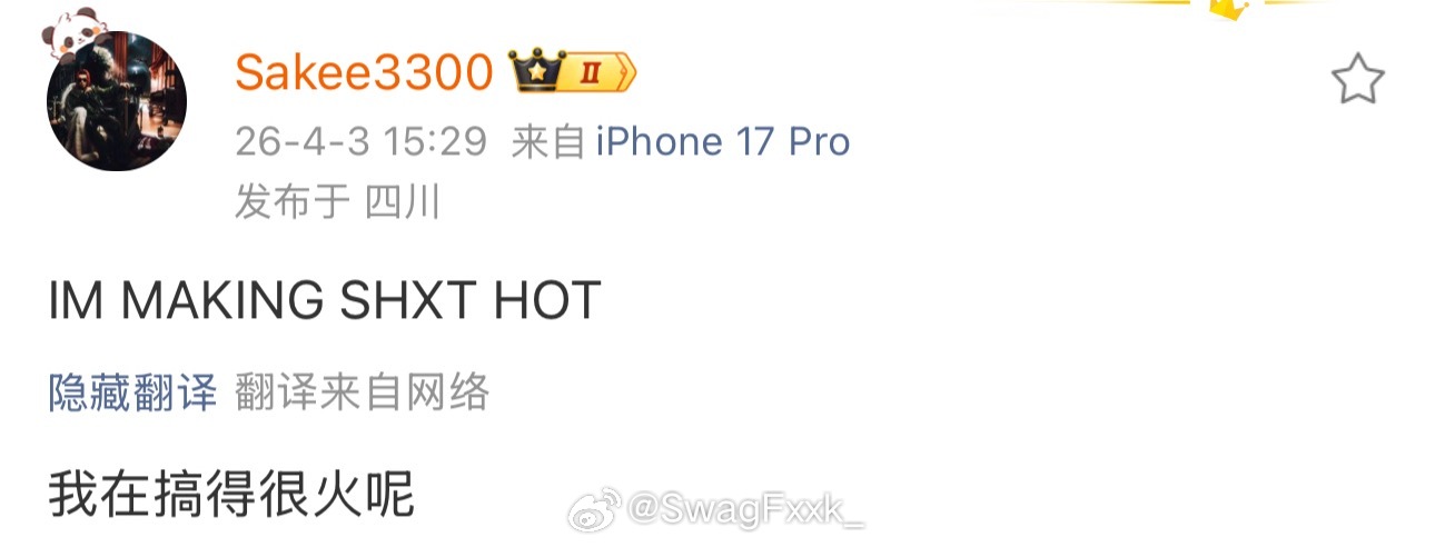 Sakee今天连续发文:IM MAKING SHXT HOT