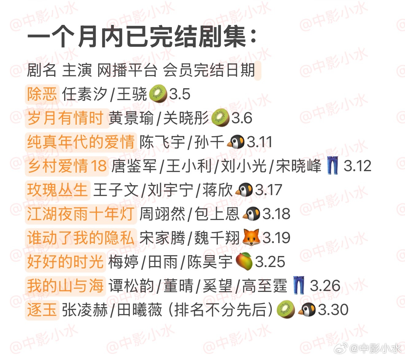 🈶她的盛焰 马思纯/宁理/袁姗姗/翟子路/章涛🈶白日提灯 迪丽热巴/陈飞宇🈶叵测 刘烨/聂远/王佳佳🈶月鳞绮纪 鞠婧祎/曾舜晞/陈都灵/田嘉瑞(排名不分先后)🈶🆕钢铁森林 井柏然/蔡文静