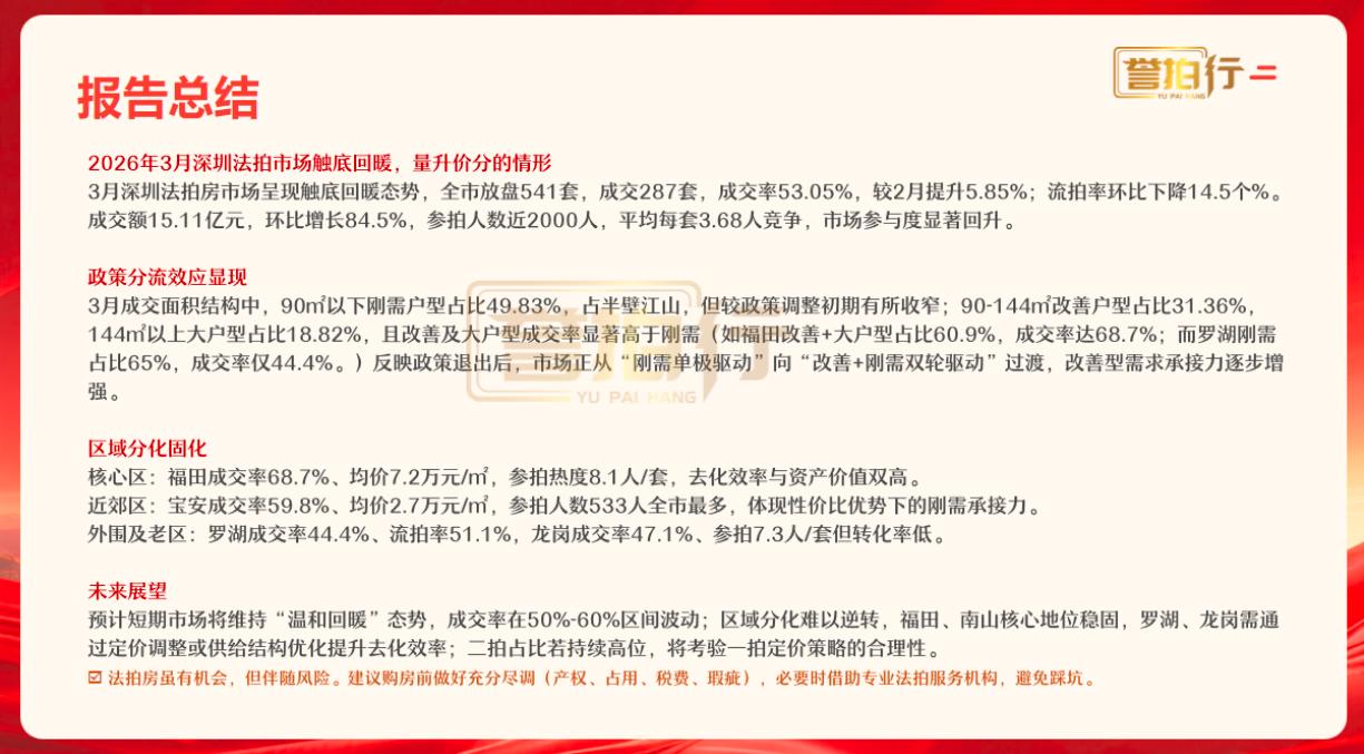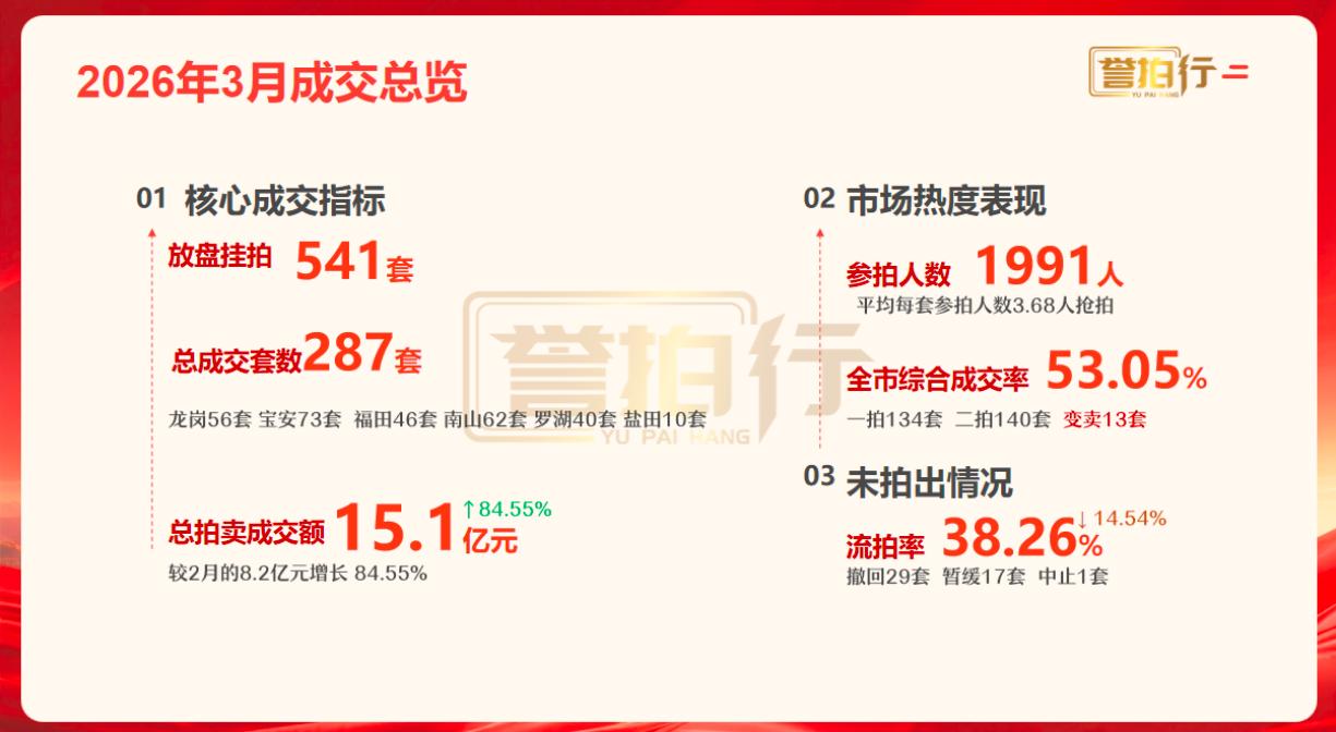 深圳2026年3月法拍住宅成交报告,参拍近2000人,成交287套,成交金额突破