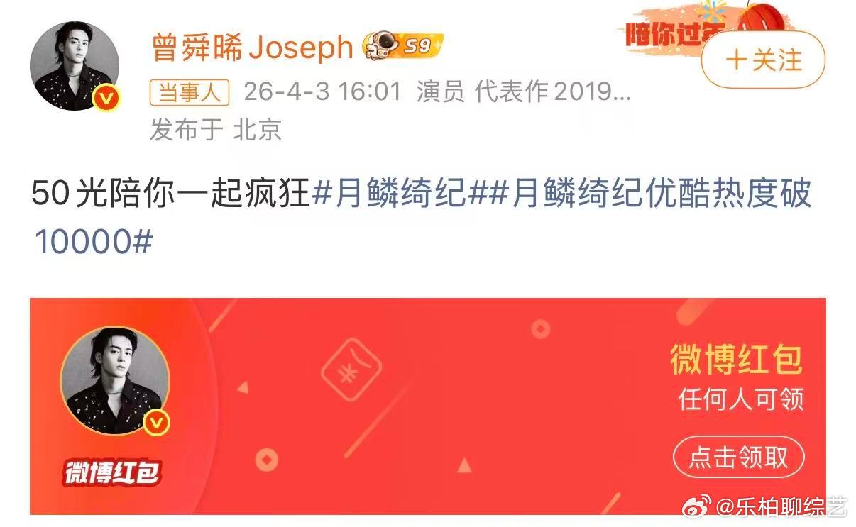 曾舜晞回应月鳞绮纪破万 武拾光果然是够大方的呀,看到曾舜晞回应月鳞绮纪破万,简