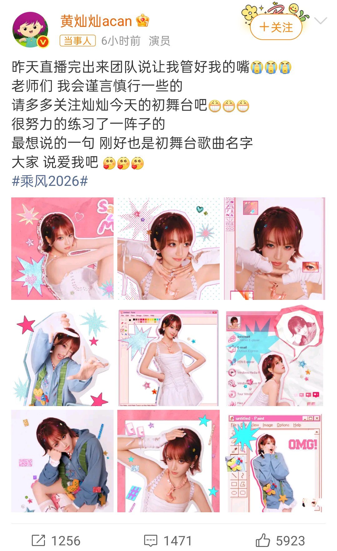 黄灿灿团队让我管好我的嘴 哈哈哈团队被黄灿灿昨天的“我假唱过”吓怕了吧,让她谨言慎行乘风初舞台直播乘风2026