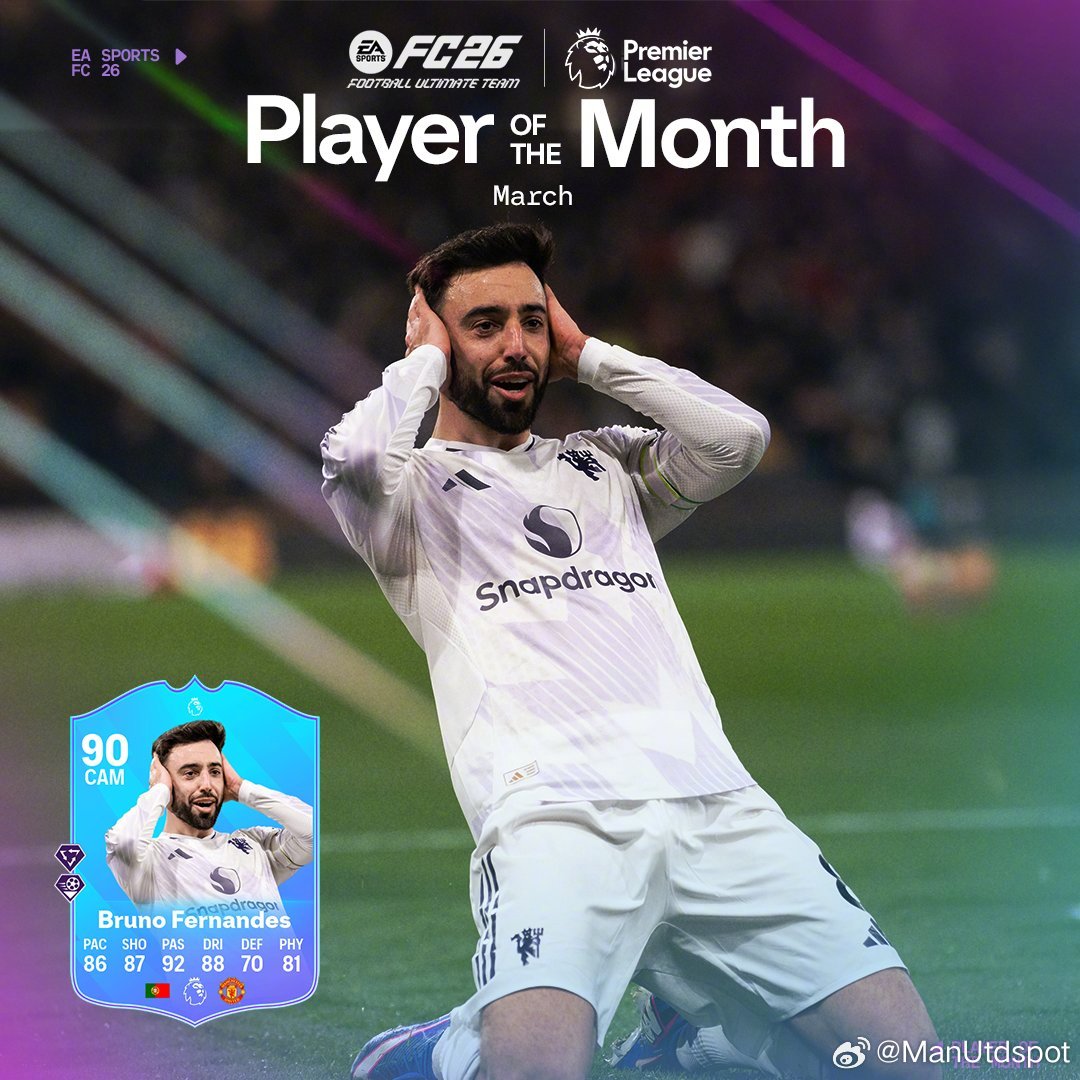英超官方宣布B费当选3月英超最佳球员👏ManUtdspot曼联英超联赛