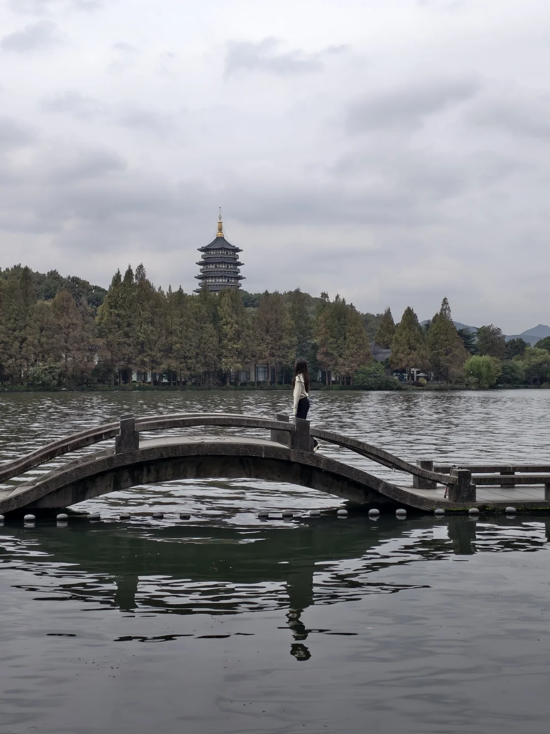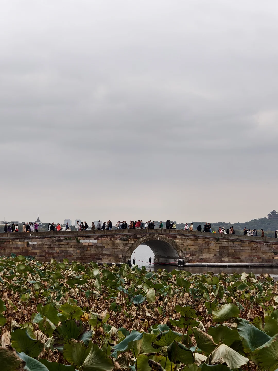 终于到达许仙和白娘子的断桥处。这里有很多人拍照📸。个人觉得下车后沿着岸边远处拍拍更好看。