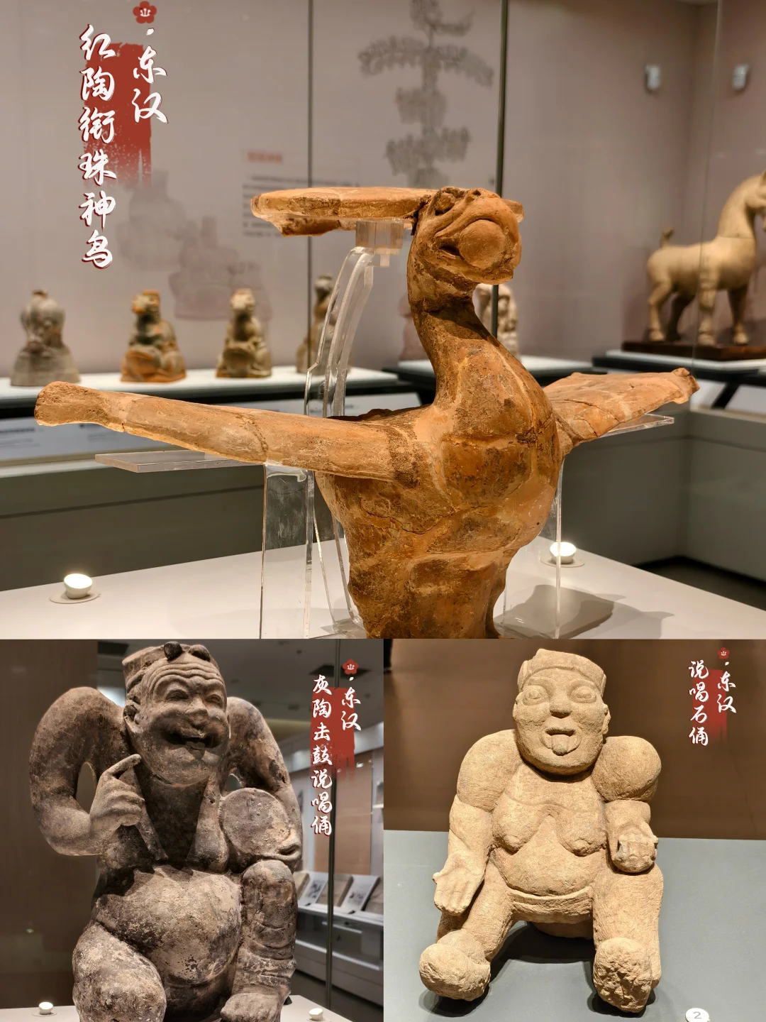 灰陶击鼓说唱俑➠说唱石俑➠红陶衔珠神鸟(这个展馆有许多可爱的雕塑,可以逛逛)