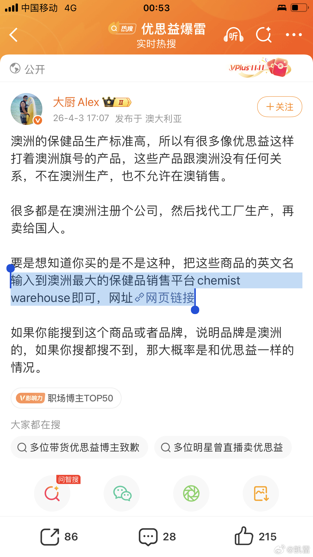 输入到澳洲最大的保健品销售平台chemist warehouse即可,网址网页链接