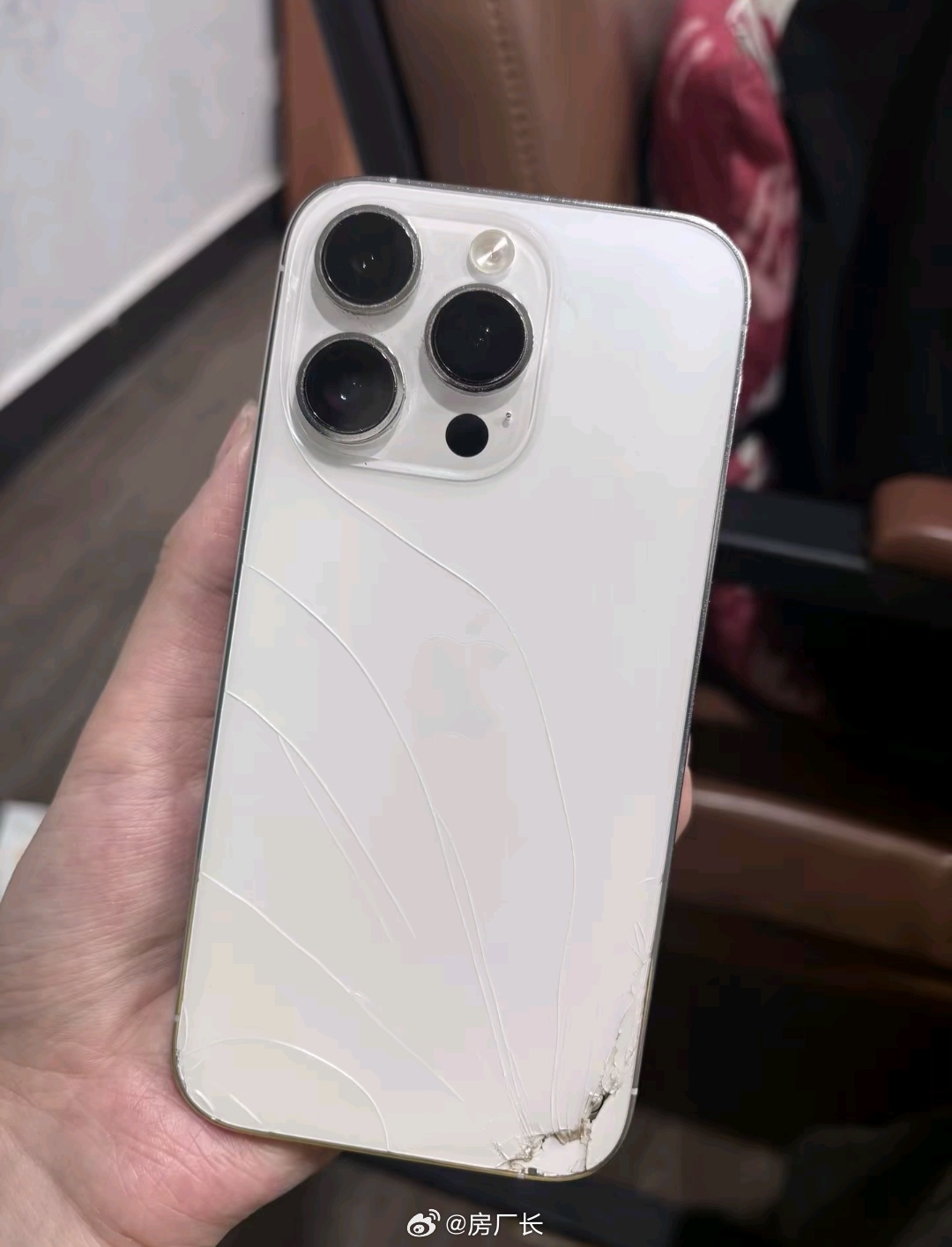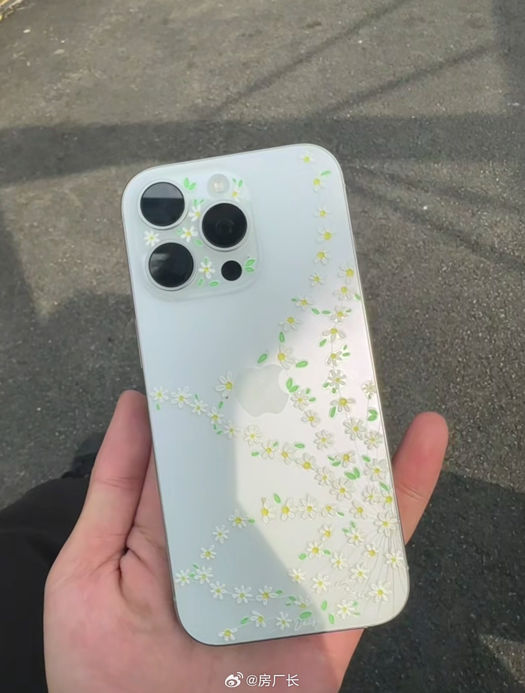 妹子们的苹果手机摔裂了,官方后盖更换太贵,自己动手顺着裂纹贴花花,省钱还很有艺术