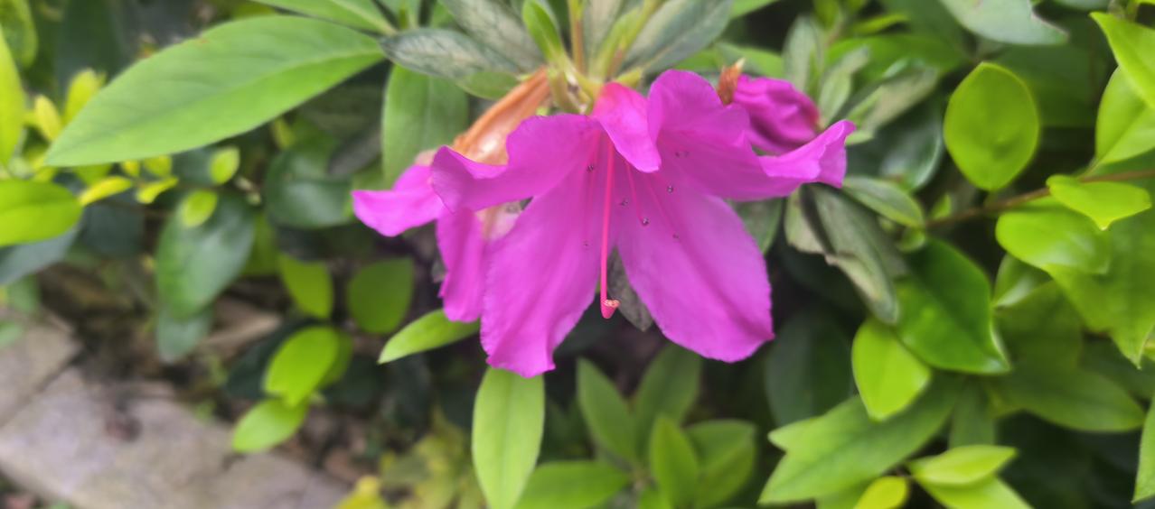 小区绿化带里的杜鹃,临沐着春风,身披晨阳的霞光,争相吐露出含苞欲放的花蕾,间杂几朵怒放的花朵,争相争艳,春光美美在人间、美在人心。
