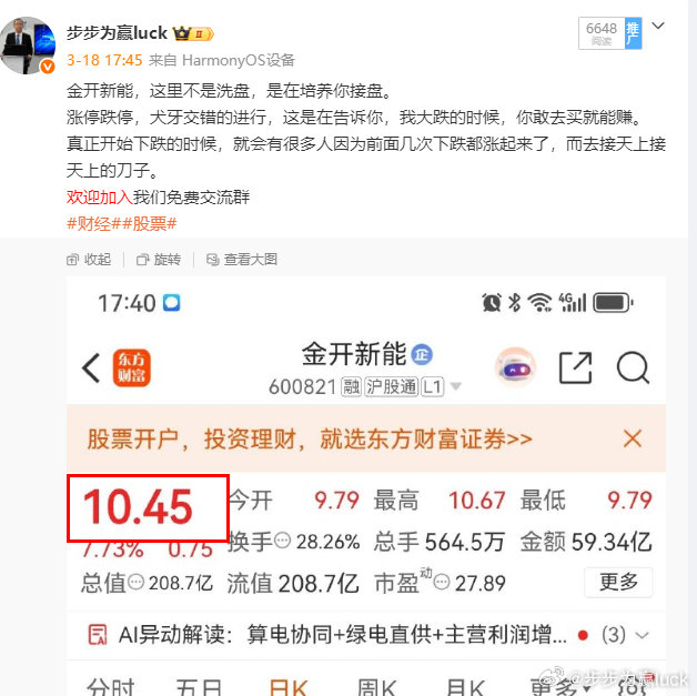 回头看金开新能这一波,走势确实很有迷惑性。我在3月18日就明确提示过风险,当时观点很直接:这不是正常洗盘,而是在刻意营造氛围、吸引资金接盘。 没想到提示后第二天,盘面反而走出一波强势拉升,盘中甚至一度冲上涨停,很多人就此被带偏。从3月13日到25日,股价连续大幅震荡、上蹿下跳,短线波动极大,俨然成了激进资金的博弈场。 真正的转折出现在3月26日,一根带长上影的大阴线砸下来,宣告这轮炒作正式结束。随后便是一路单边下跌,仅仅7个交易日,股价就从11.7元一路跌至7.85元,区间跌幅超三成。 因为前期在高位已经完成了充分震荡出货,筹码结构很弱,即便短期出现大跌,这里也不适合盲目抄底抢反弹。哪怕中途有小幅反抽,也大概率只是技术性修复,后续仍有继续下探的空间。为了可能不到5个点的反弹利润,去承担20个点以上的下跌风险,性价比实在太低,完全不值得参与。欢迎加入我们的免费交流群财经 股票