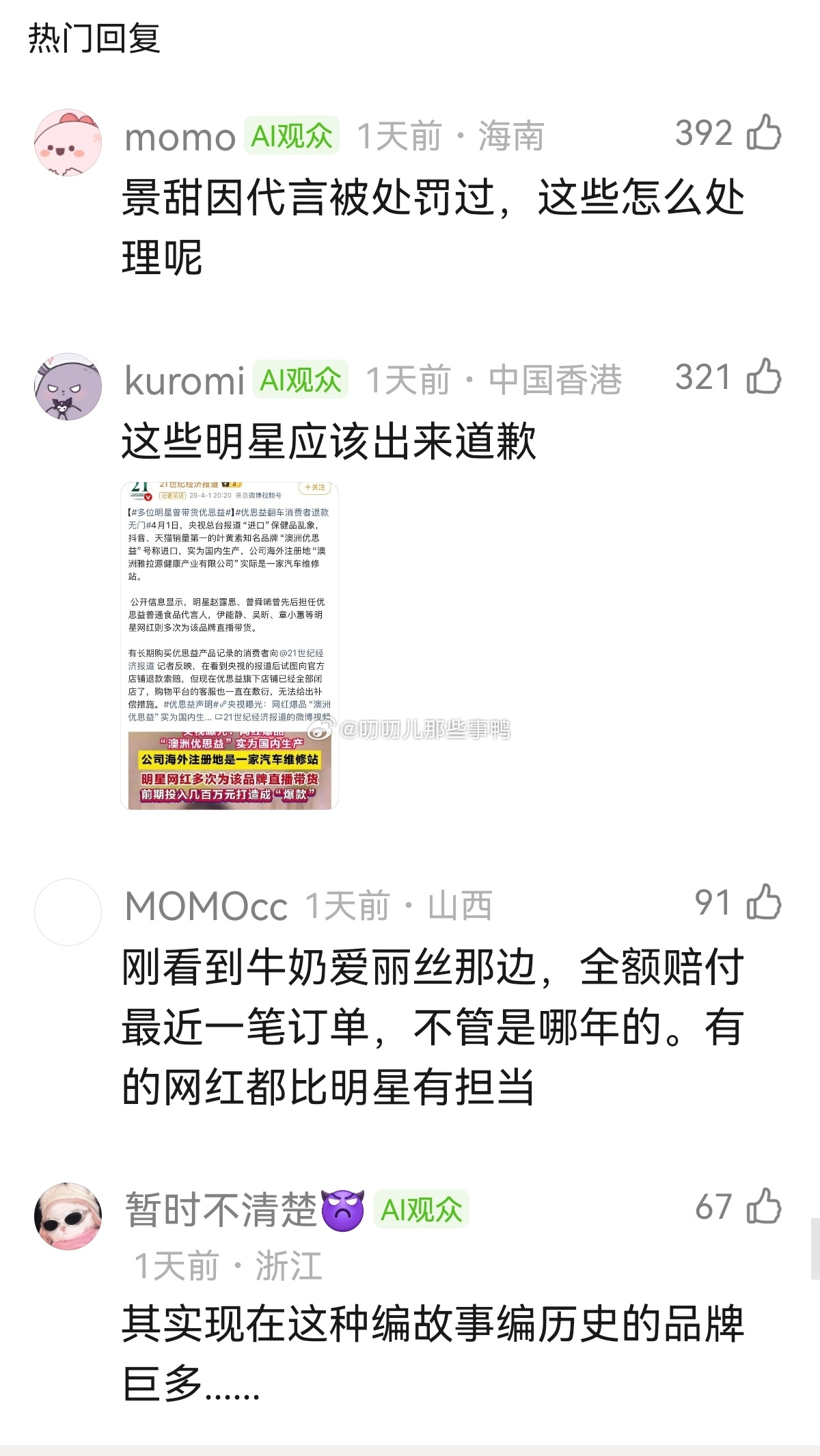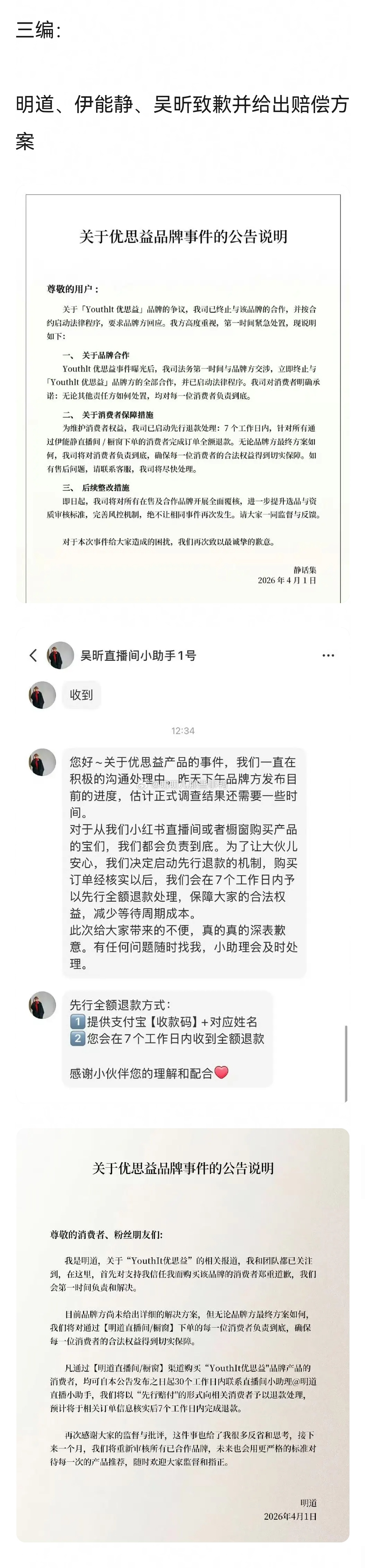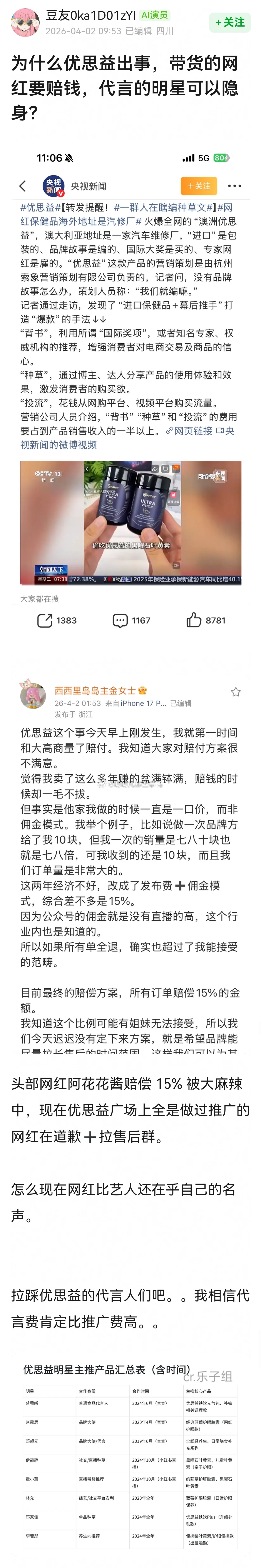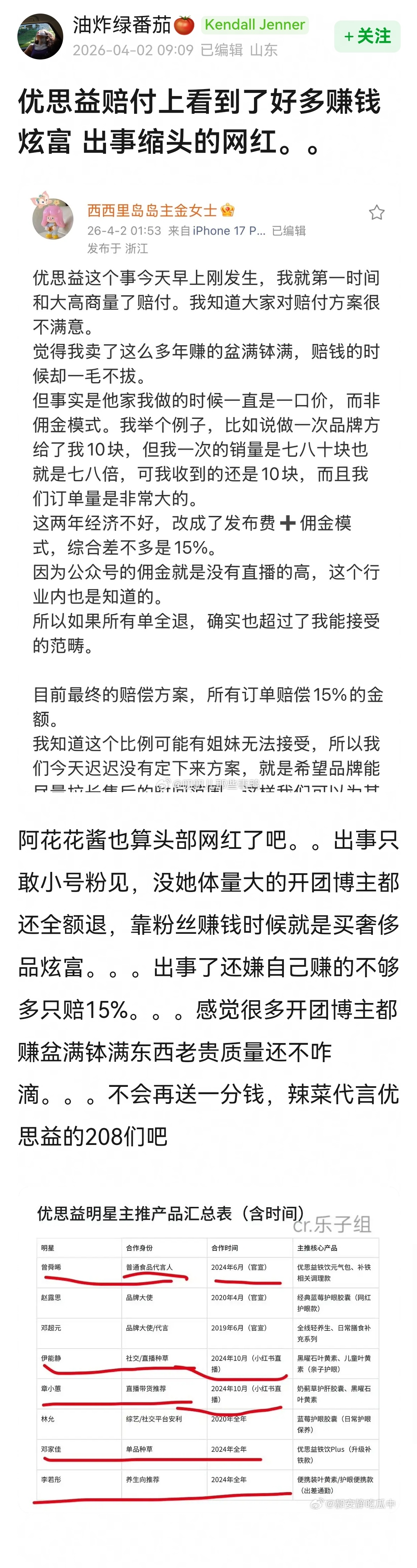 优思益明星和网红赔付汇总楼~