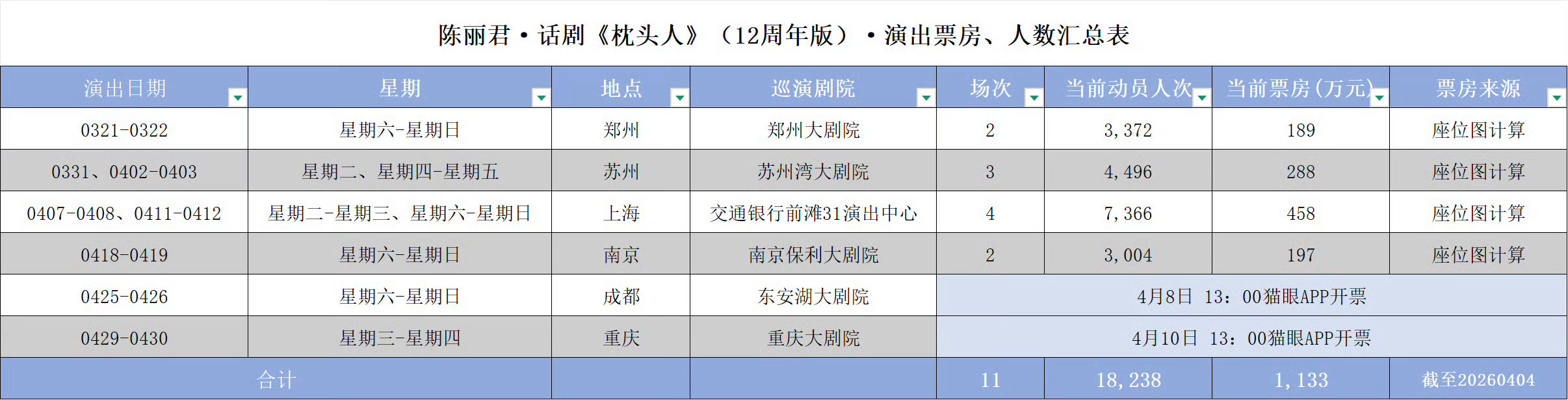 陈丽君领衔主演话剧《枕头人》开票11场,票房1133万元 ,场均票房百万,剧场号召力太强了👍