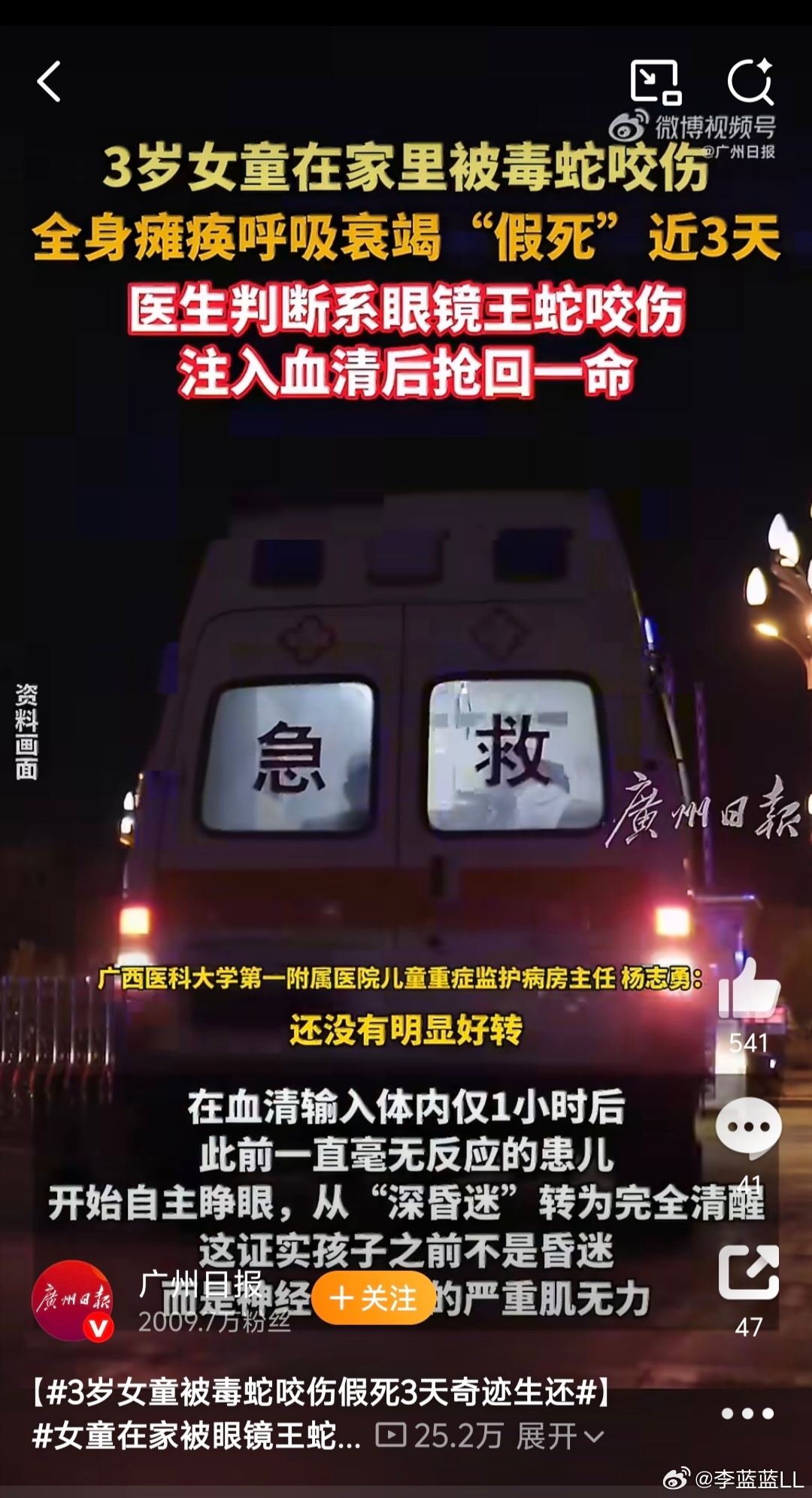 3岁女童被毒蛇咬伤假死3天奇迹生还我滴天,小宝宝昏迷假死三天居然挺过来了,福大命大