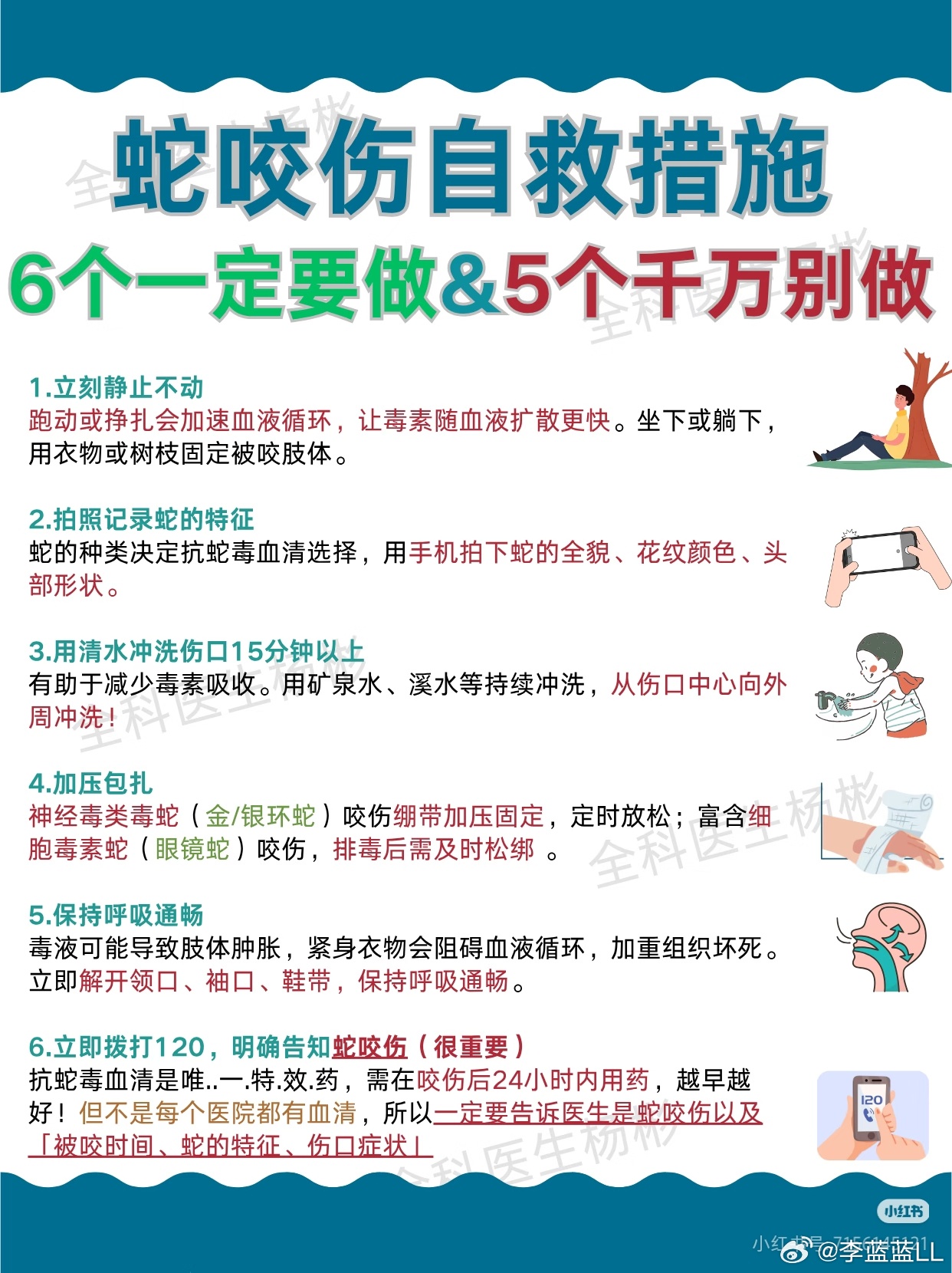 现在天气越来越热,蛇也开始频繁出没了!重点提醒下大家:被蛇咬千万别用嘴去吸毒液!先拍照记住蛇长啥样,赶紧送医院才是正事!