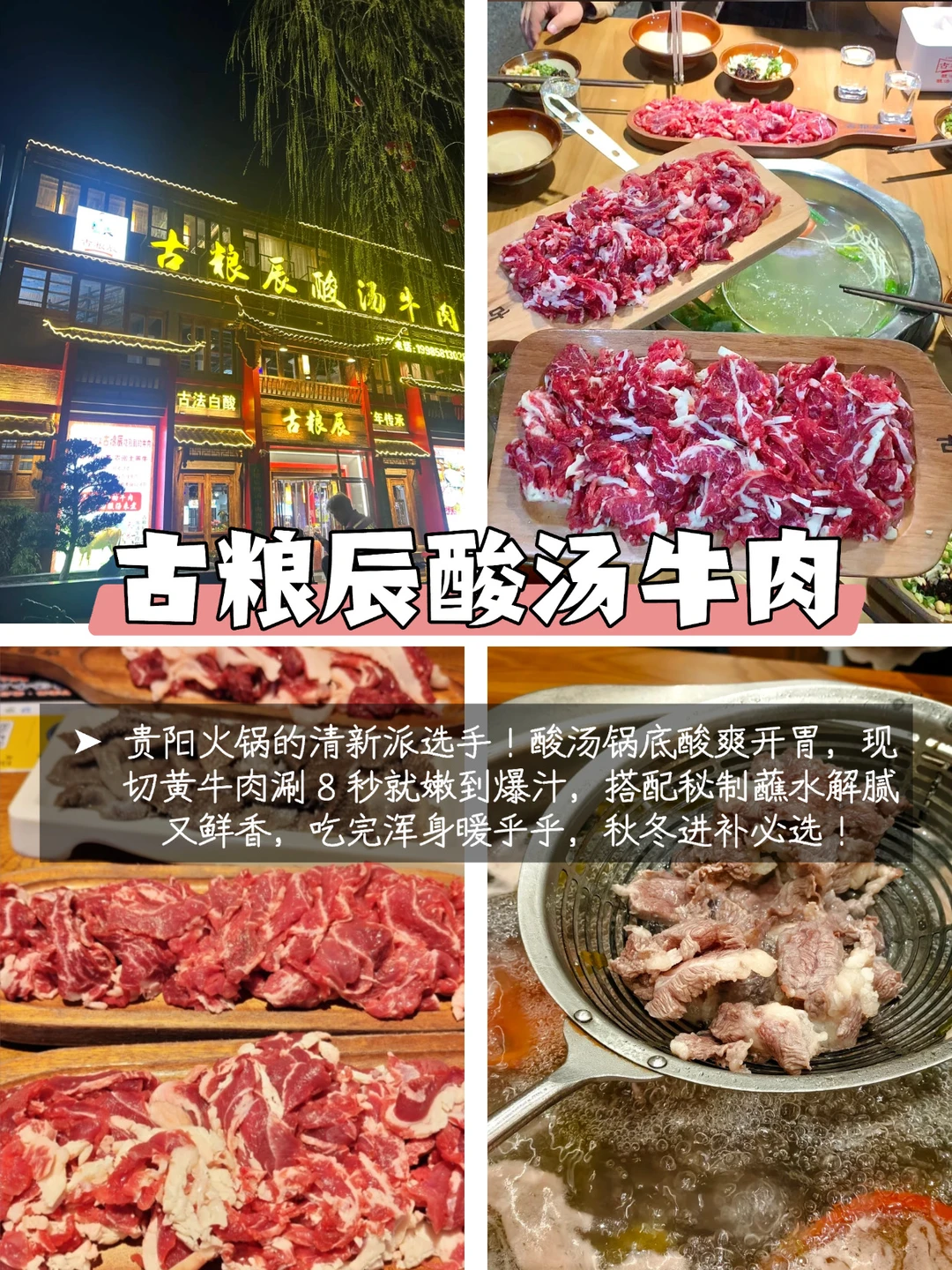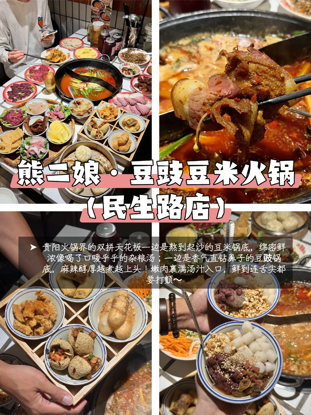 🔥贵阳土著拍胸脯安利!这份贵阳美食推荐清单,从暖身火锅到街头小吃,全是本地人天天打卡的宝藏,拒绝网红套路,一口就爱上贵阳味✨ 🥛 山花酸奶 吃完重口火锅的解腻神饮!贵州本土老品牌,冰淇淋酸奶、烧酸奶、芦荟酸奶口味全在线,绵密醇厚不甜腻,逛累了来一袋,瞬间给味蕾降温! 🍲 熊二娘・豆豉豆米火锅(民生路店)【贵阳火锅】 贵阳火锅界的「双拼天花板」✨ 一边是熬到起沙的豆米锅底,绵密鲜浓像喝了口暖乎乎的杂粮汤;一边是香气直钻鼻子的豆豉锅底,麻辣醇厚越煮越上头!嫩肉裹满汤汁入口,鲜到连舌尖都要打颤~ ✅必点:现炸酥肉外酥里嫩咬开爆汁,红糖糍粑糯叽叽裹满黄豆粉,还有脆哨洋芋粑...碳水 + 暖锅的快乐直接拉满!本地人聚餐都爱往这钻,市井烟火气直接焊在店里! 🥔 蛋包洋芋 街头烟火气天花板!金黄蛋皮裹住软糯洋芋泥,撒上辣椒面 + 折耳根碎,一口爆香咸辣入味,是贵阳人逛夜市必冲的路边小吃! 🐂 古粮辰酸汤牛肉 贵阳火锅的清新派选手!酸汤锅底酸爽开胃,现切黄牛肉涮 8 秒就嫩到爆汁,搭配秘制蘸水解腻又鲜香,吃完浑身暖乎乎,秋冬进补必选! 📌 打卡路线:先冲熊二娘 / 古粮辰吃火锅暖身→逛夜市啃蛋包洋芋→最后来袋山花酸奶解腻,一天吃遍贵阳味!