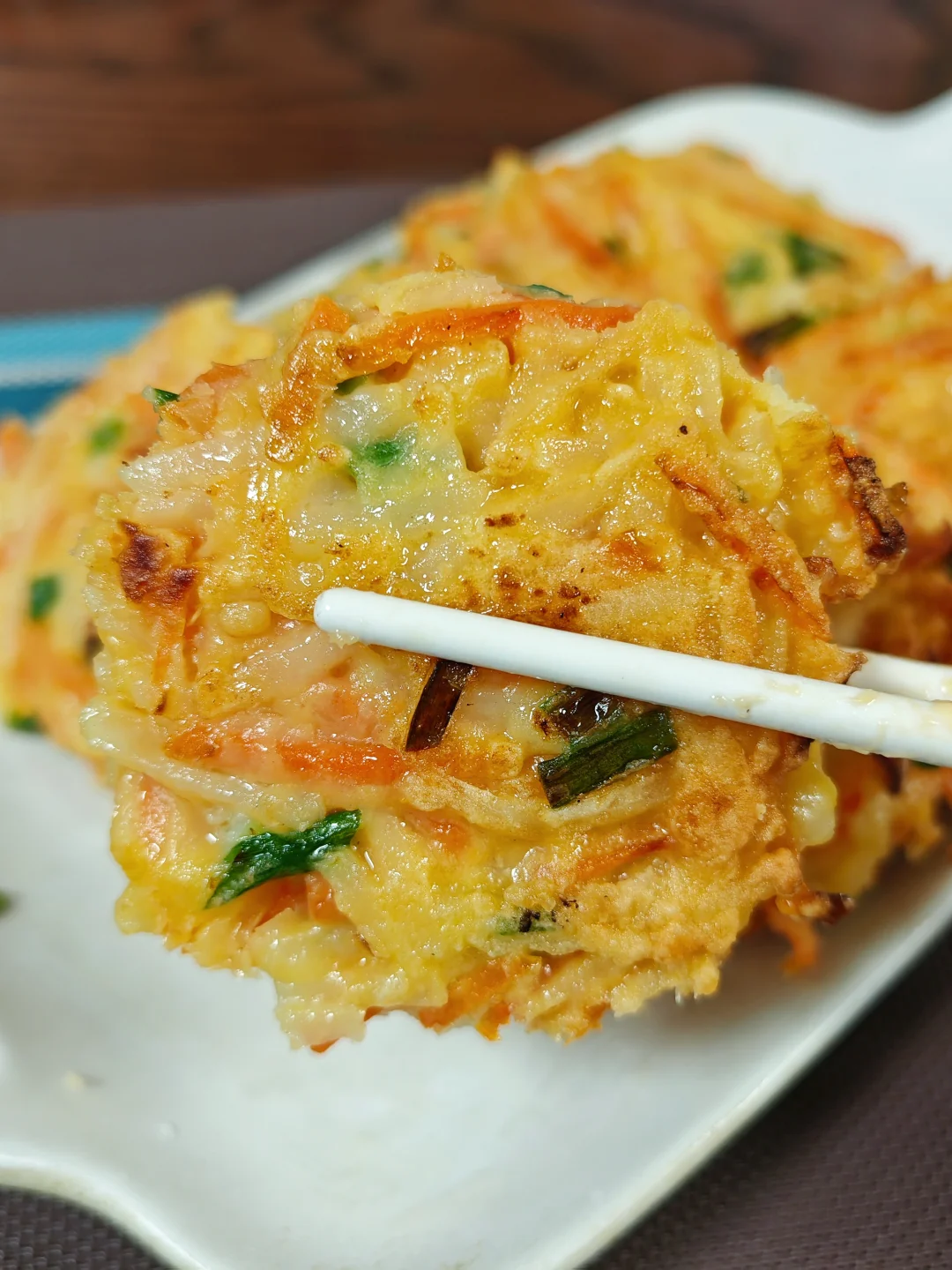 1⃣️各种食材切丝➕面粉➕适量鸡蛋和水搅拌均匀,黏糊糊的状态即可。