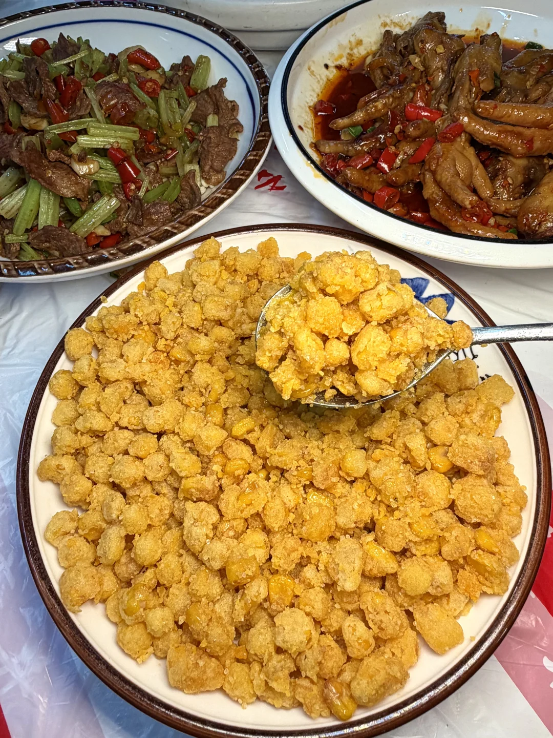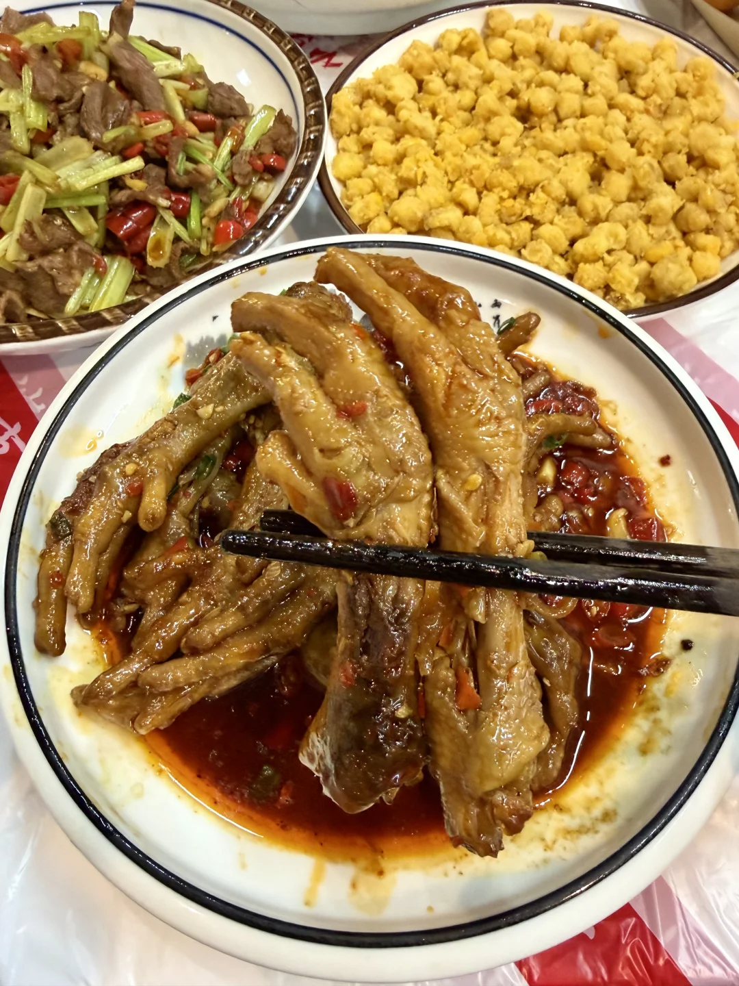 好吃到连太上老君来了也要吃两碗饭的程度😍! 吃一次让我想了3天😭😭😭!!! 咸蛋黄玉米和咸蛋黄茄子真的超级下饭😍😍😍! 辣子鸡爽!辣!辣!的,里面还可以加清水面🥹🥹🥹! 还有糯米鸡翅,蒸的超级糯,糯叽叽爱好者的福音!!! 十八秒小炒黄牛肉真的嫩到弹呀,加上方便面,谁懂呀😱!