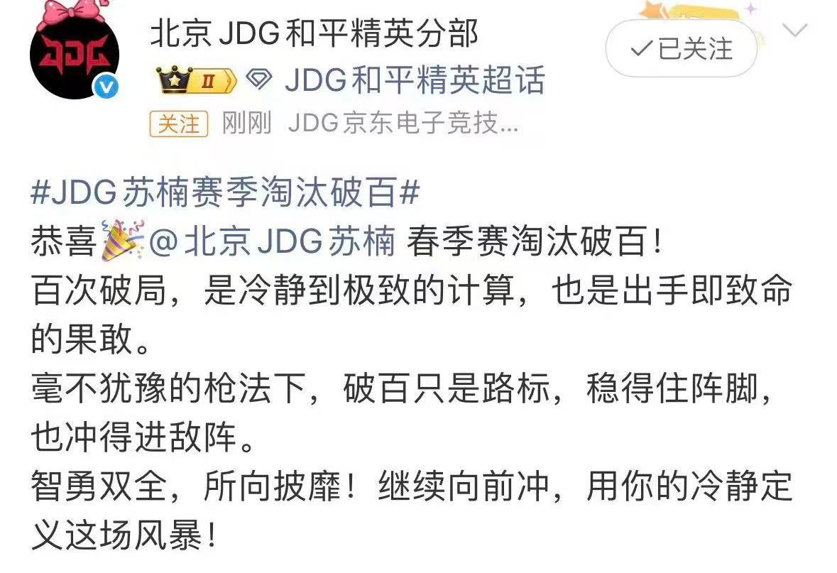 JDG苏楠赛季淘汰破百 破百只是新起点苏楠稳得住阵脚也冲得进敌阵,智勇双全所向披