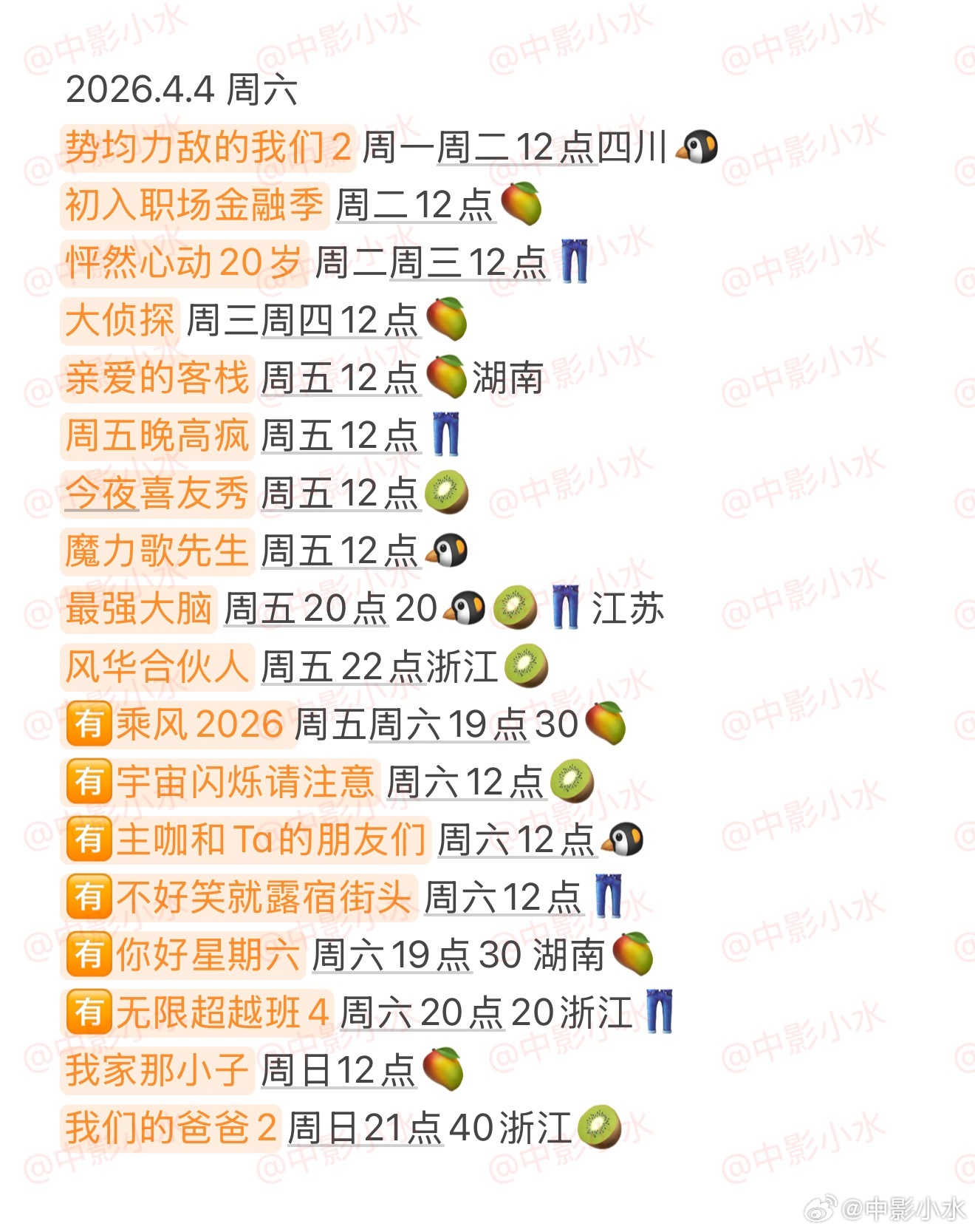 🈶乘风2026 🈶宇宙闪烁请注意 🈶主咖和Ta的朋友们 🈶不好笑就露宿街头 🈶你好星期六 🈶无限超越班4