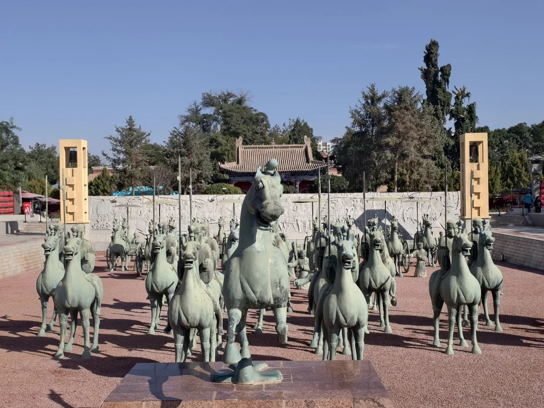 武威雷台马踏飞燕出土地🈶铜车马仪仗佣
