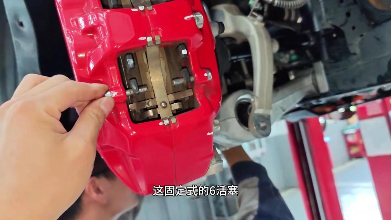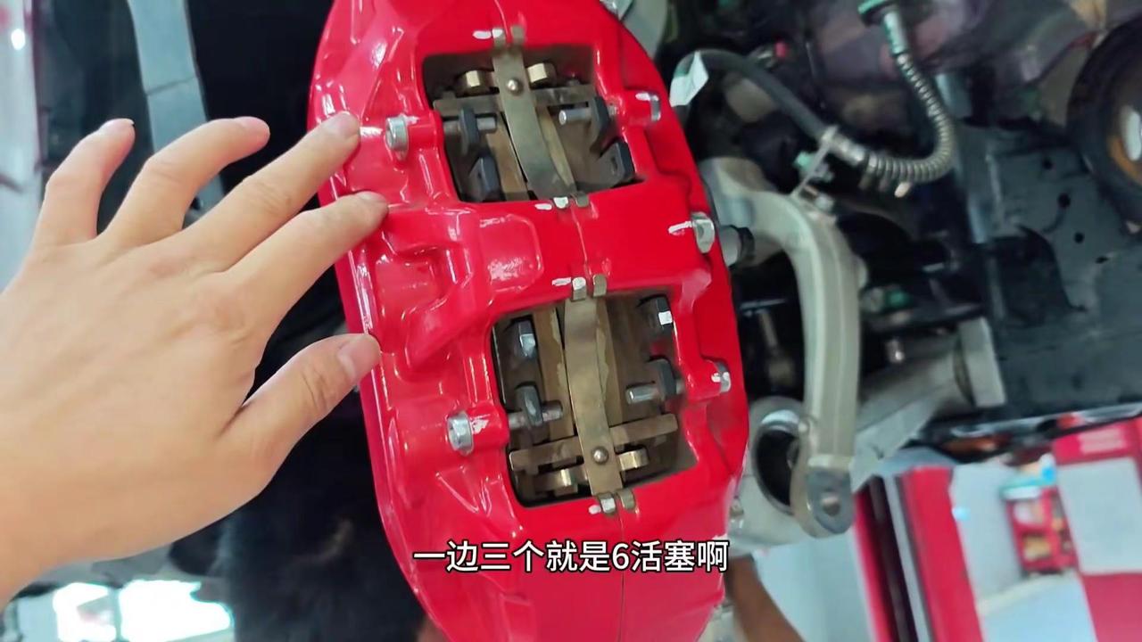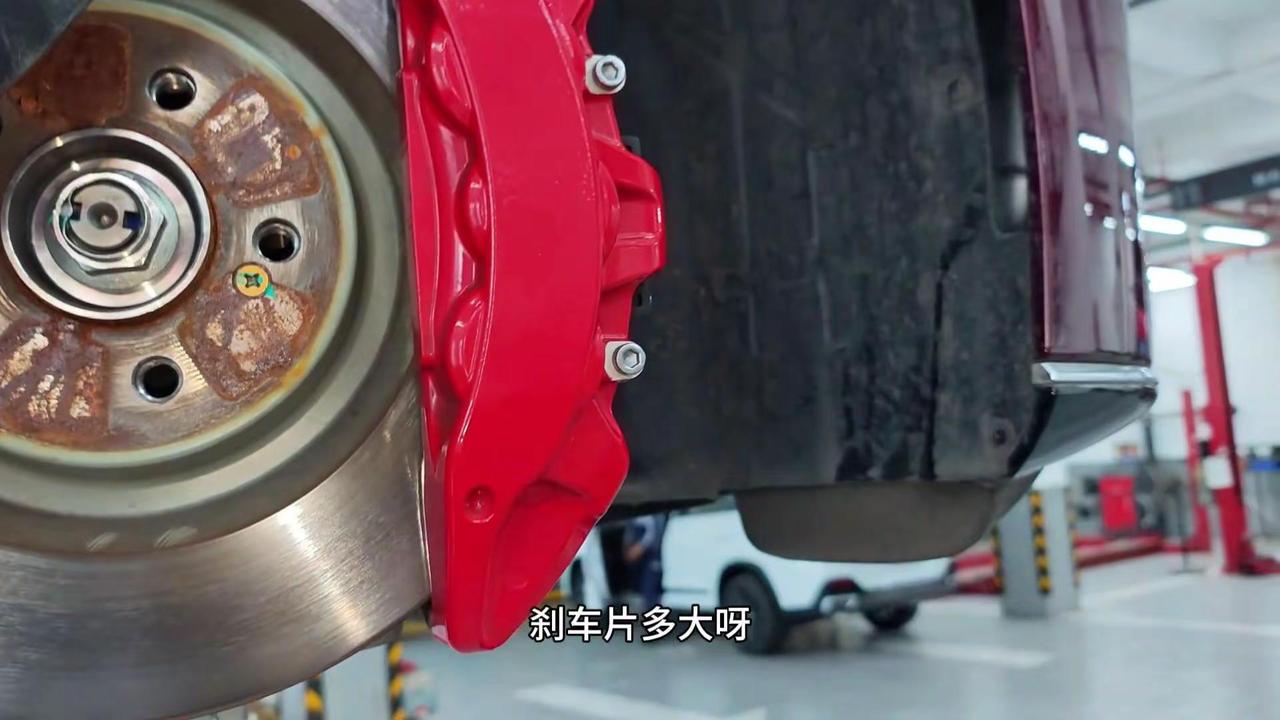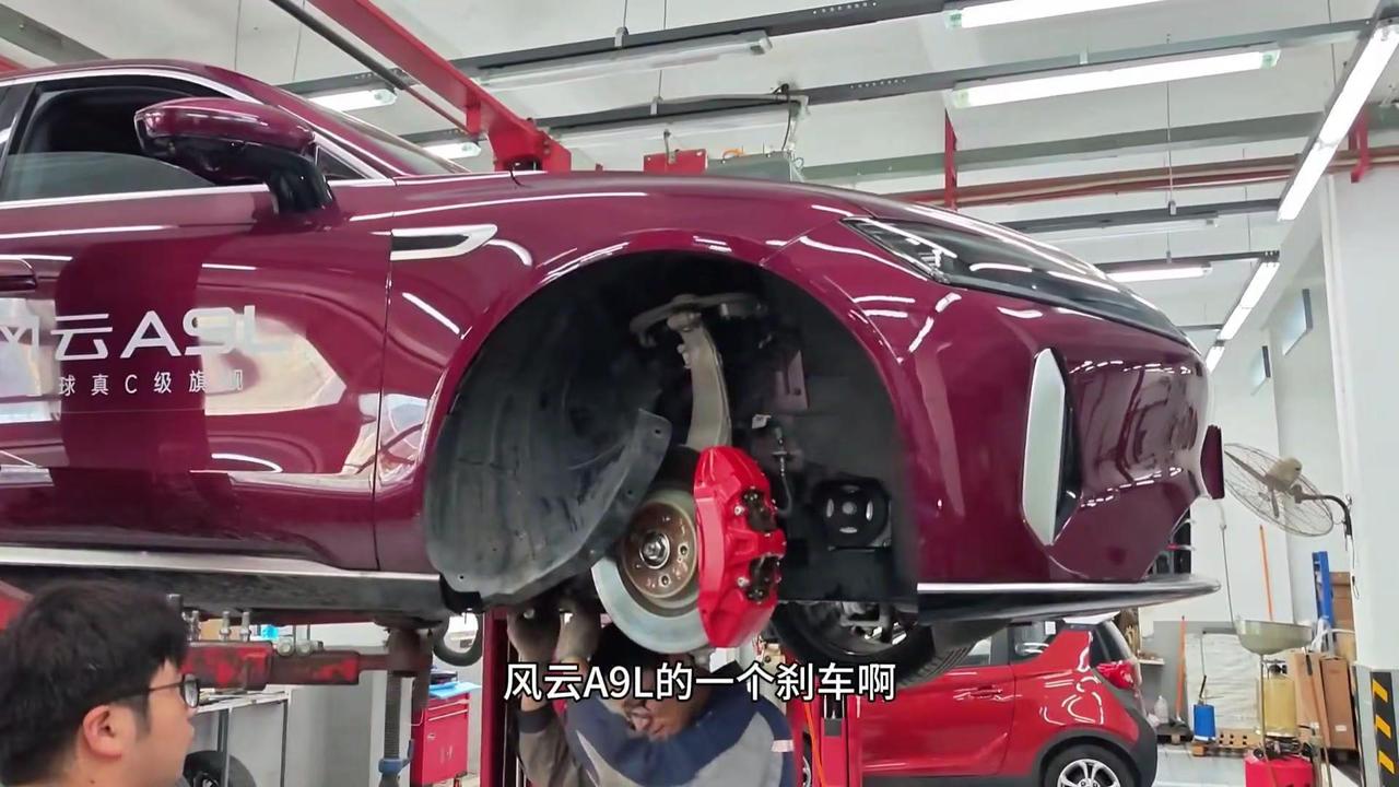 风云A9L六活塞刹车实力如何?🔥风云A9L的六活塞刹车是样子货还是真材实料?通过对比你就知道了。某些新势力车型虽然卡钳看起来很大,但刹车片却很薄,显得华而不实。而风云A9L的刹车卡钳尺寸明显更大,从侧面看就特别厚实。从正面也能清晰看到,它的刹车片比一些新势力品牌大了近一半,用料相当扎实。这是固定式的六活塞刹车,卡钳由铝合金材质打造,上面的固定螺丝也增多了,整体质感非常好。要知道,有的车型装的只是卡钳罩,中看不中用,而A9L的这一套是实打实的六活塞刹车,铝合金悬挂用料也很足,扎实感一眼可见。风云A9L六活塞刹车国产车评测