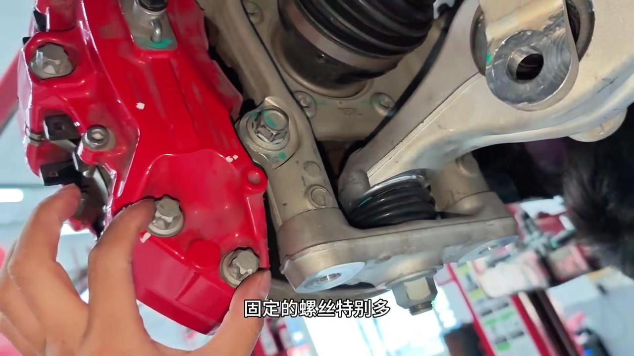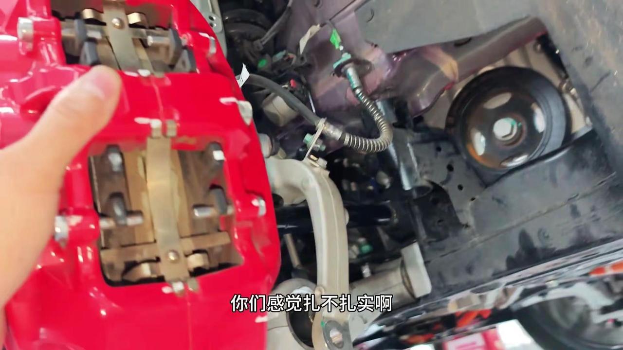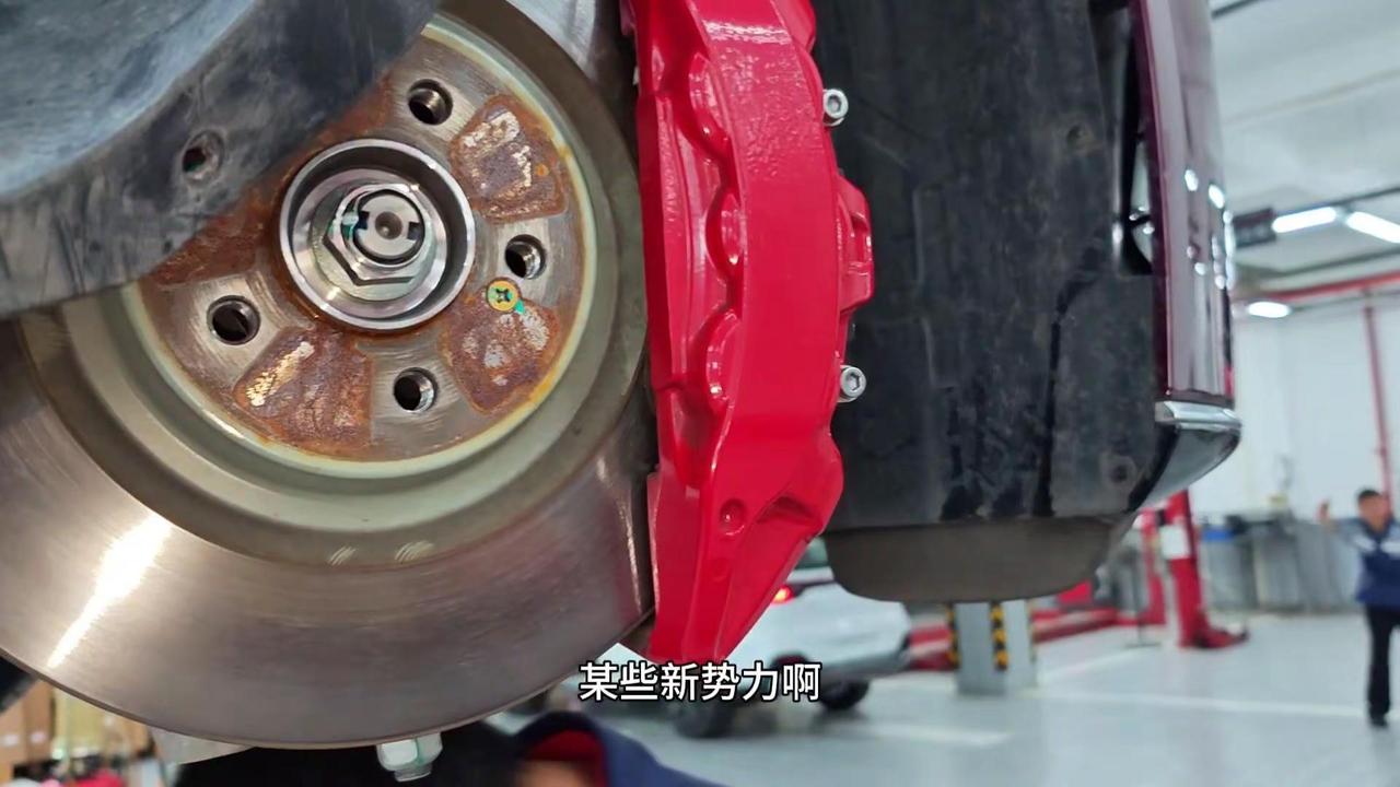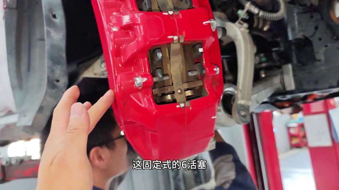 风云A9L六活塞刹车实力如何?🔥风云A9L的六活塞刹车是样子货还是真材实料?通过对比你就知道了。某些新势力车型虽然卡钳看起来很大,但刹车片却很薄,显得华而不实。而风云A9L的刹车卡钳尺寸明显更大,从侧面看就特别厚实。从正面也能清晰看到,它的刹车片比一些新势力品牌大了近一半,用料相当扎实。这是固定式的六活塞刹车,卡钳由铝合金材质打造,上面的固定螺丝也增多了,整体质感非常好。要知道,有的车型装的只是卡钳罩,中看不中用,而A9L的这一套是实打实的六活塞刹车,铝合金悬挂用料也很足,扎实感一眼可见。风云A9L六活塞刹车国产车评测