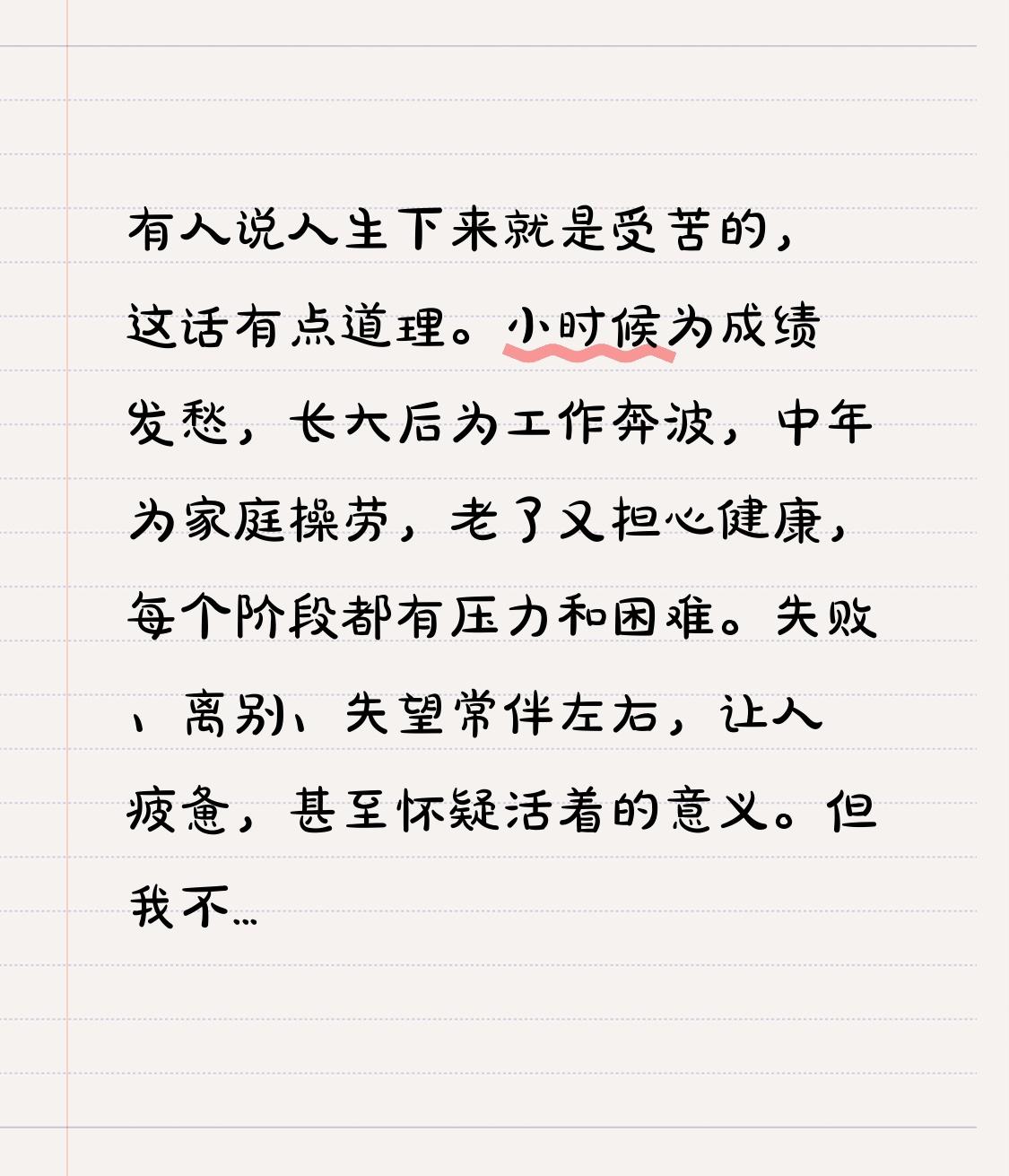 有人说人生下来就是受苦的,这话有点道理。小时候为成绩发愁,长大后为工作奔波,中年为家庭操劳,老了又担心健康,每个阶段都有压力和困难。失败、离别、失望常伴左右,让人疲惫,甚至怀疑活着的意义。