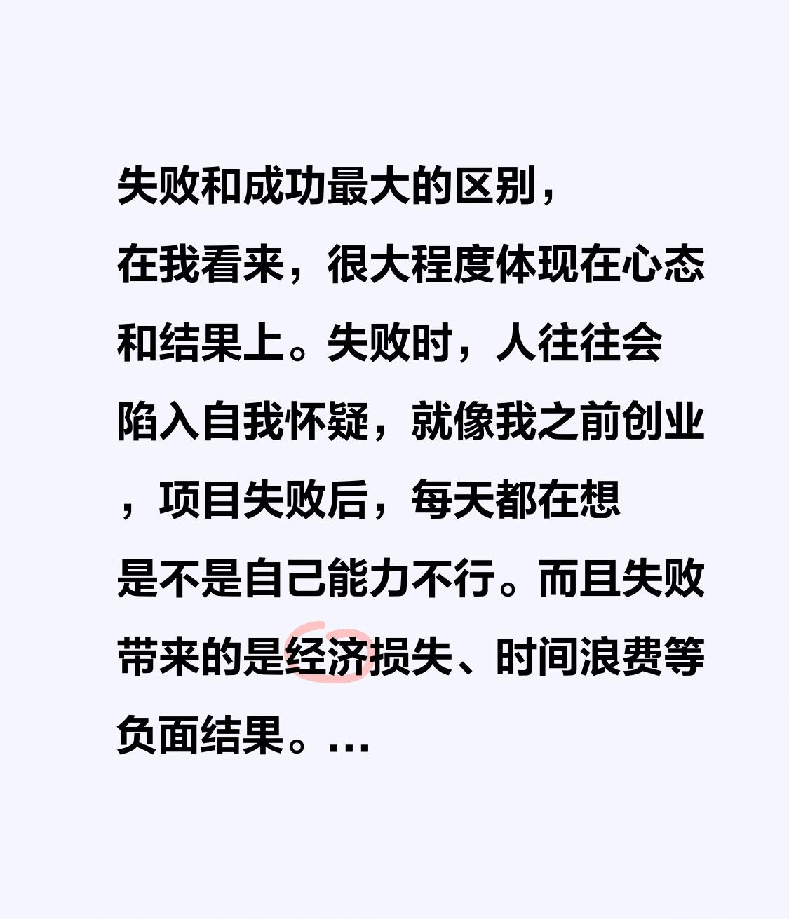 失败和成功最大的区别,在我看来,很大程度体现在心态和结果上。