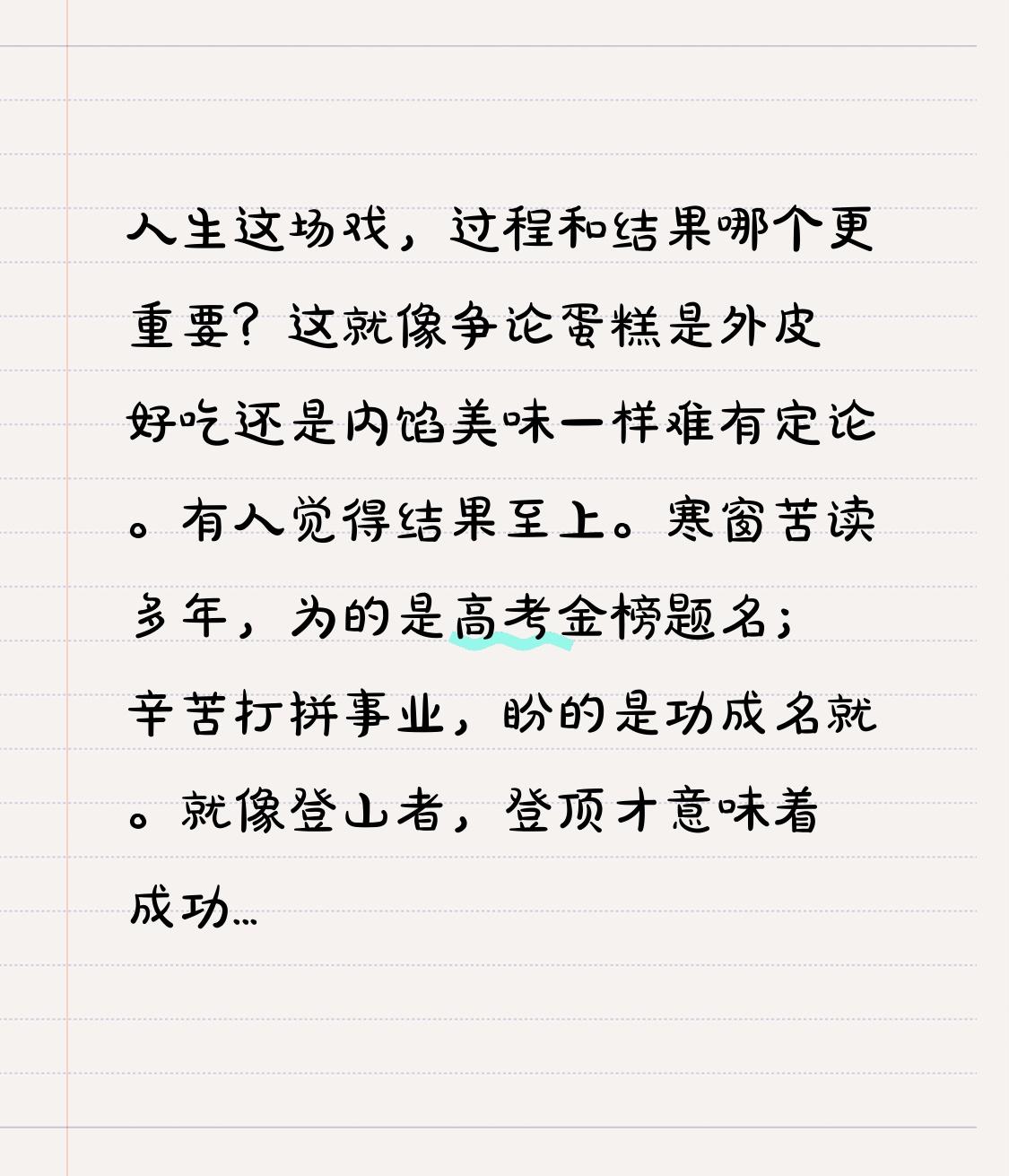 人生这场戏,过程和结果哪个更重要?这就像争论蛋糕是外皮好吃还是内馅美味一样难有定论。