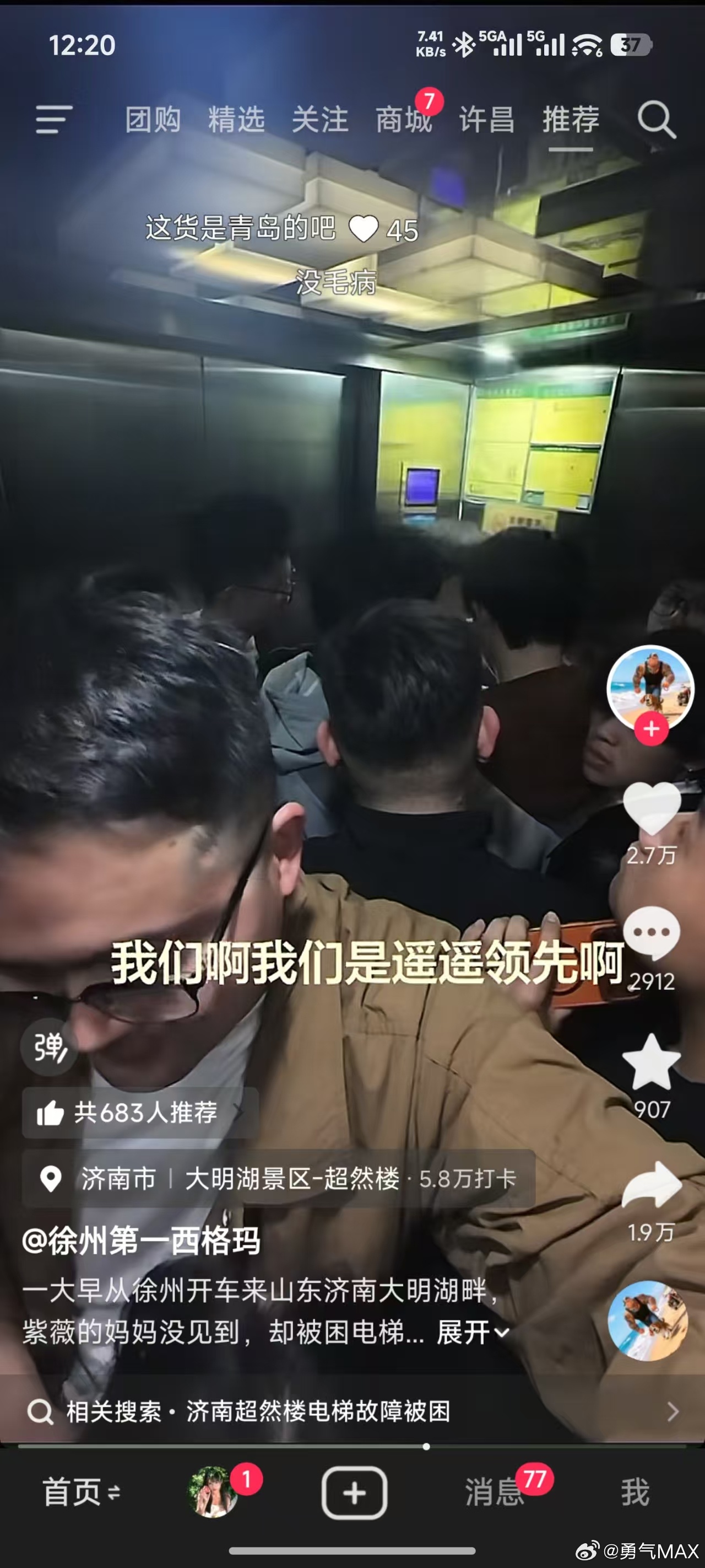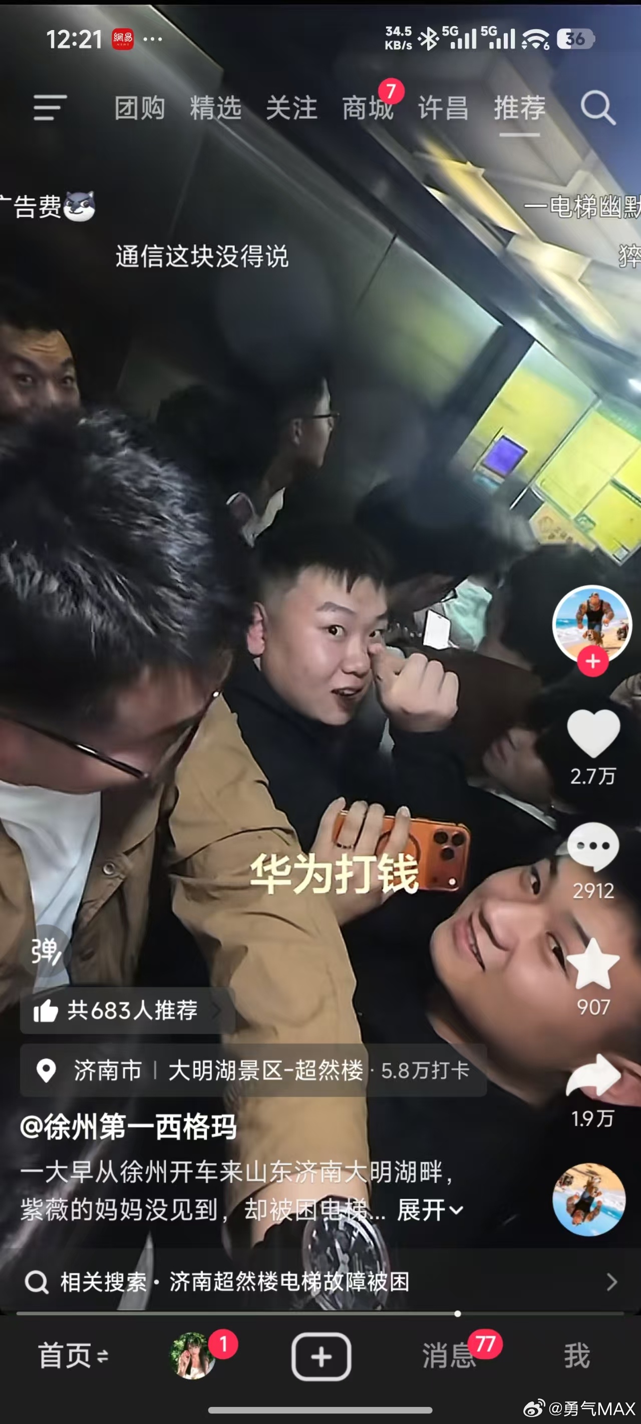 一群人困在电梯里面了,很多人没信号,这个人用华为打了个电话获救了!!