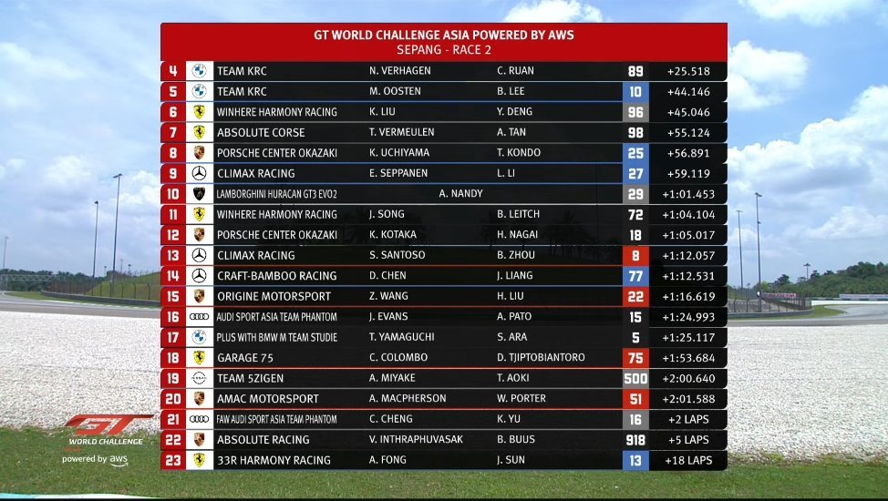 2026赛季GT World Challenge Asia马来西亚🇲🇾雪邦 第二回合正赛🔚~保时捷包揽全场前三名👀