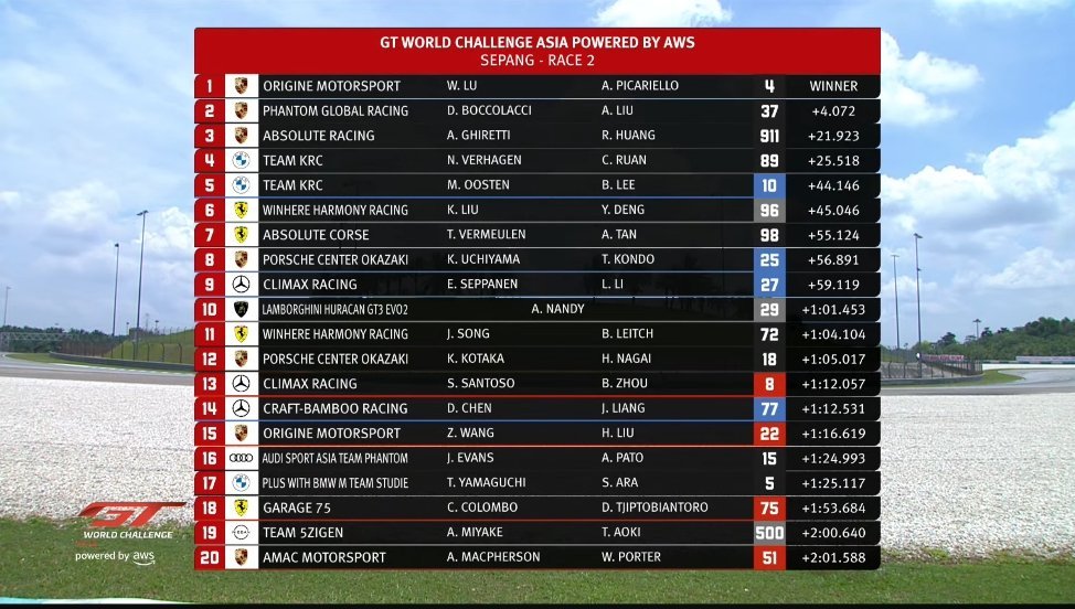 【全场冠军🥇】🏎Origine Motorsport的4号车组(Pro-Am组别/车手吕威➕保时捷签约车手Alessio Picariello)