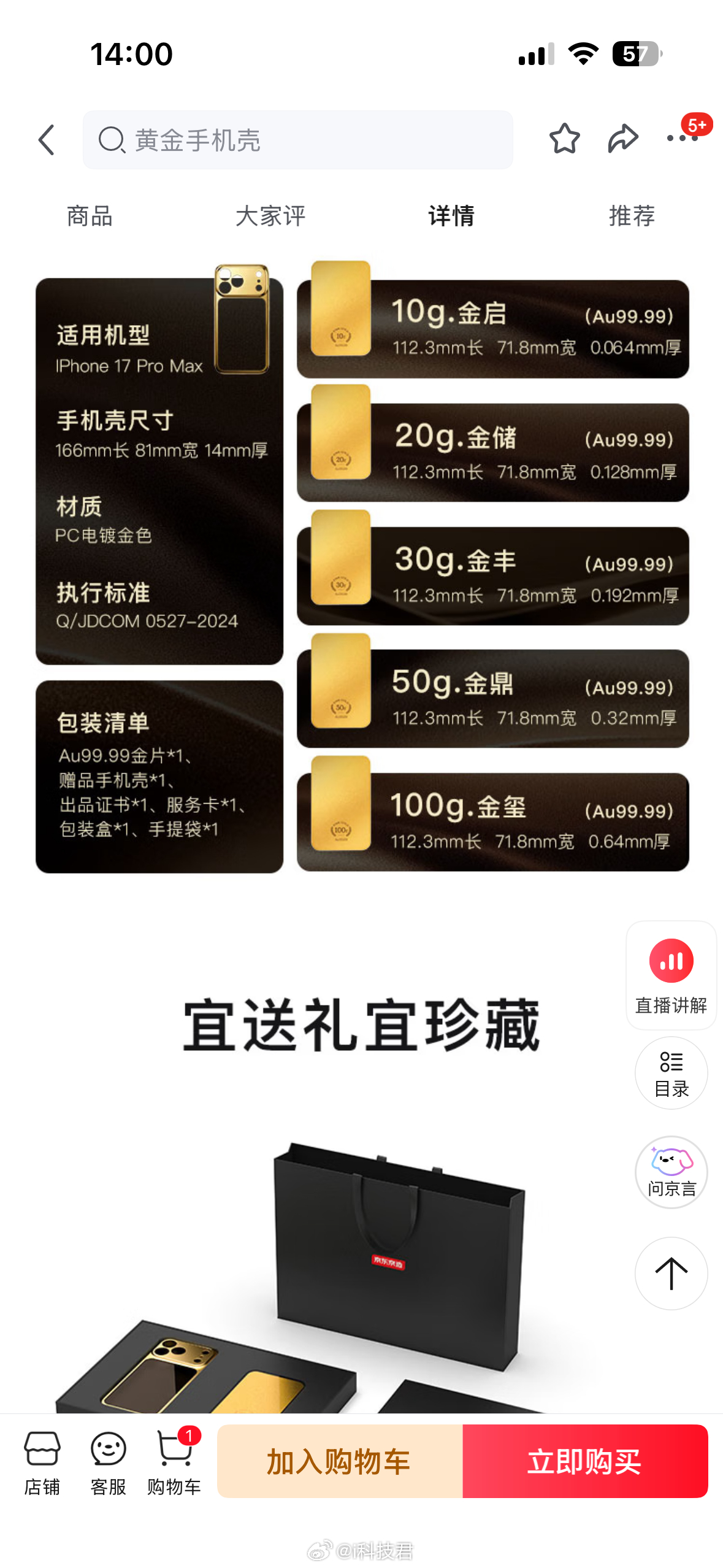 手机壳比手机还贵30克黄金片,38999元,还带一个手机壳