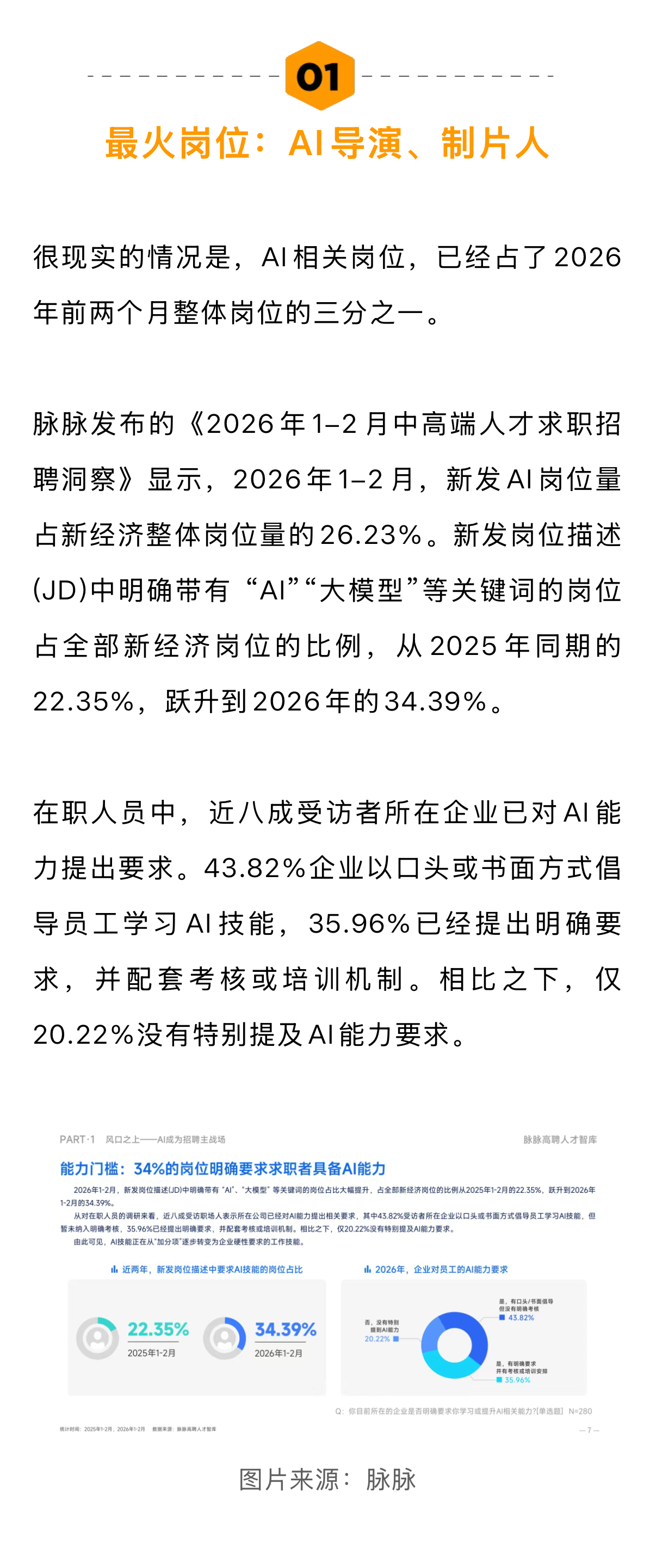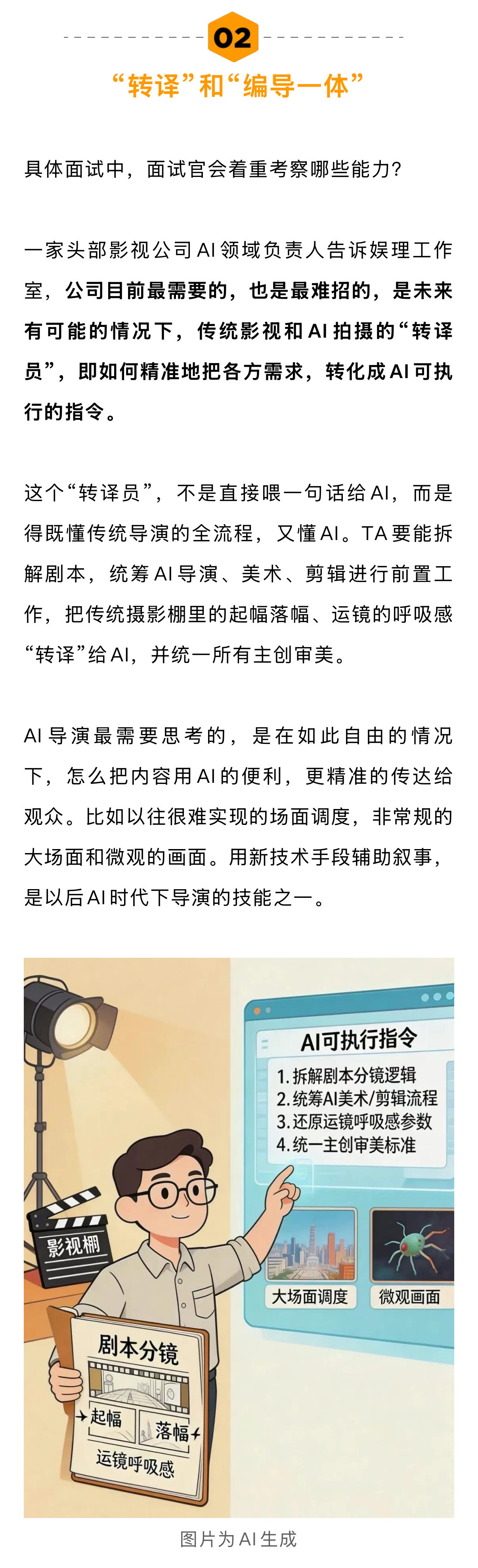 AI导演成2026最火影视岗位近八成企业要求员工AI能力 年后,多位影视工作者向娱理工作室倾诉了自己的焦虑。虽然还未失业,但很多人觉得自己未来会是产业链上被替代的一环,急于思考自身专业如何与AI结合,甚至考虑转行。还有部分年后找工作的影视人,面试时被频繁拷问“AI技能”,根本不知如何应答。