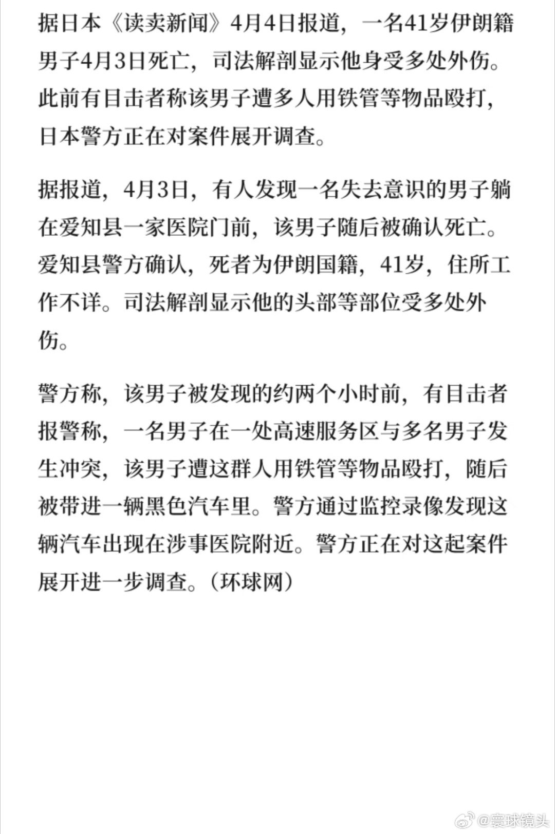 伊朗籍男子在日本被殴打致死日本的治安这么糟糕了吗?都可以随便打杀伊朗男子了。这难道不会影响日本的营商环境吗?
