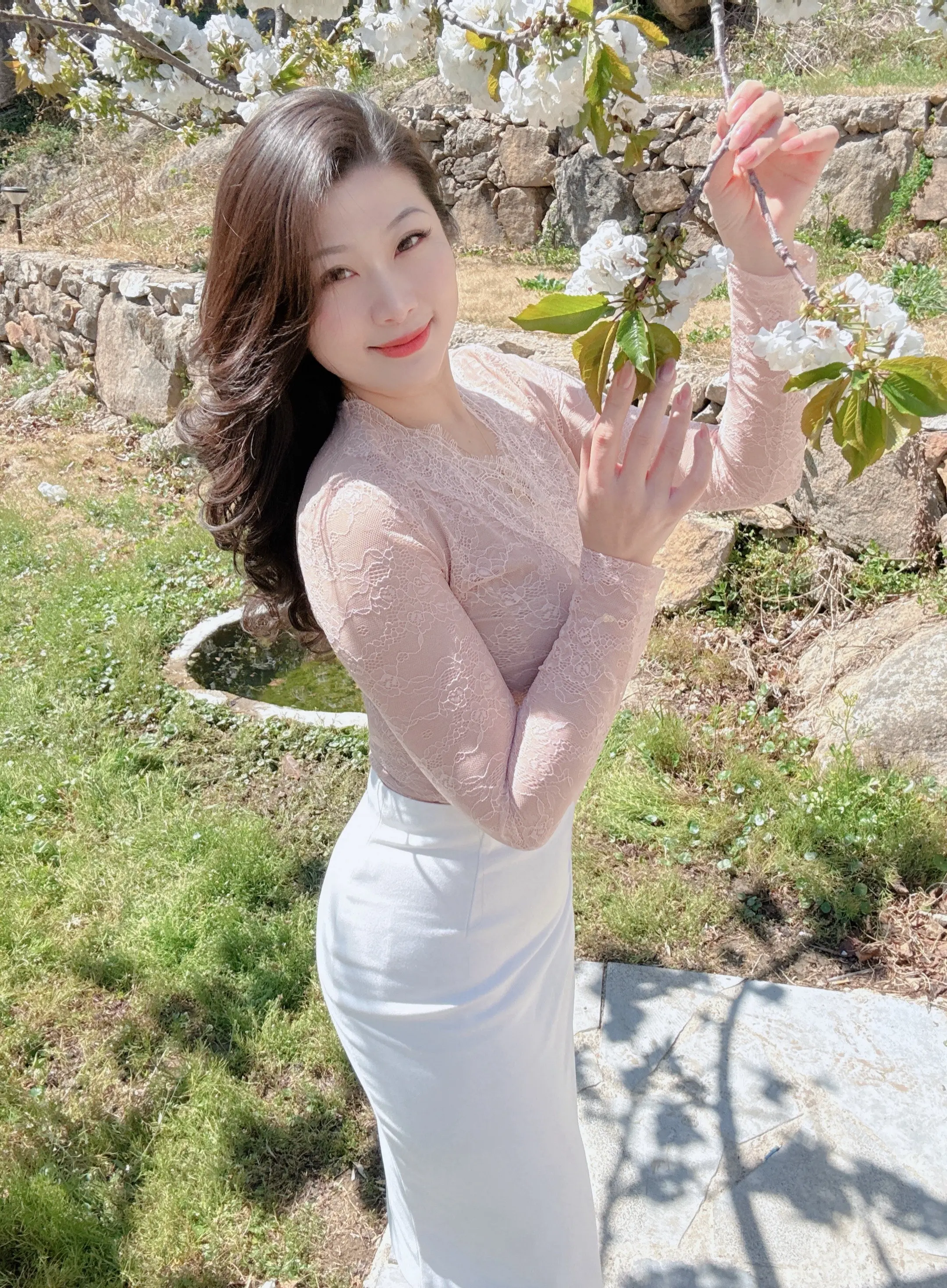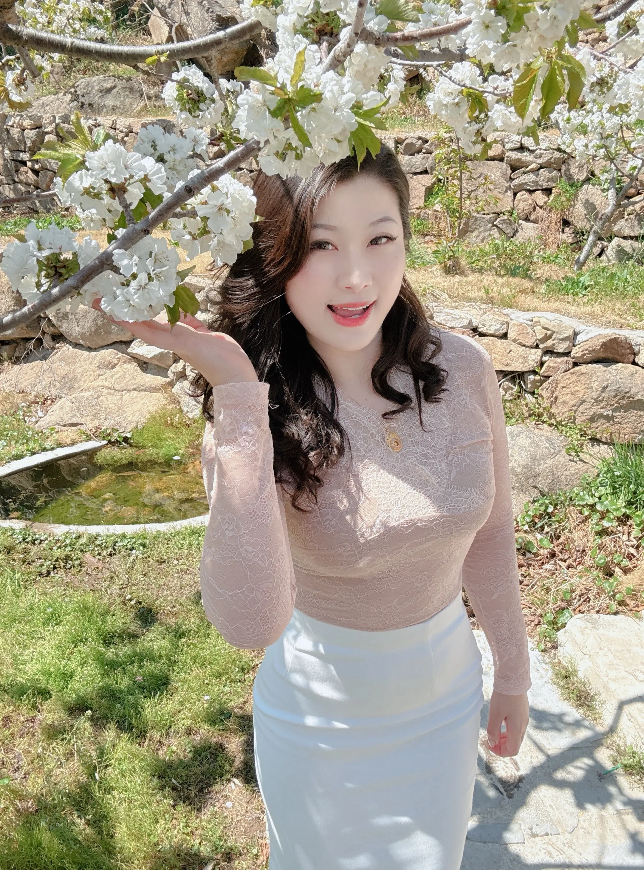 白花落满肩头,也落进了春日的温柔里。这一刻,只与风、与花、与自己,安静相处。