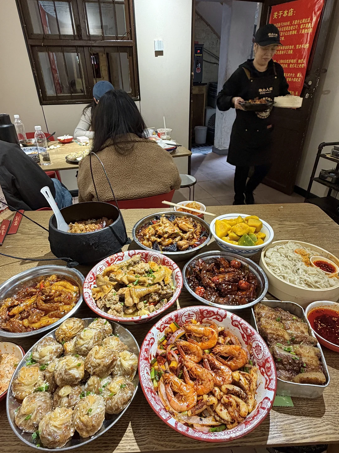 陕西渭南,7名游客爬完华山到一家餐馆吃饭,几人饿坏了,点了三盆米饭和一些菜,总消