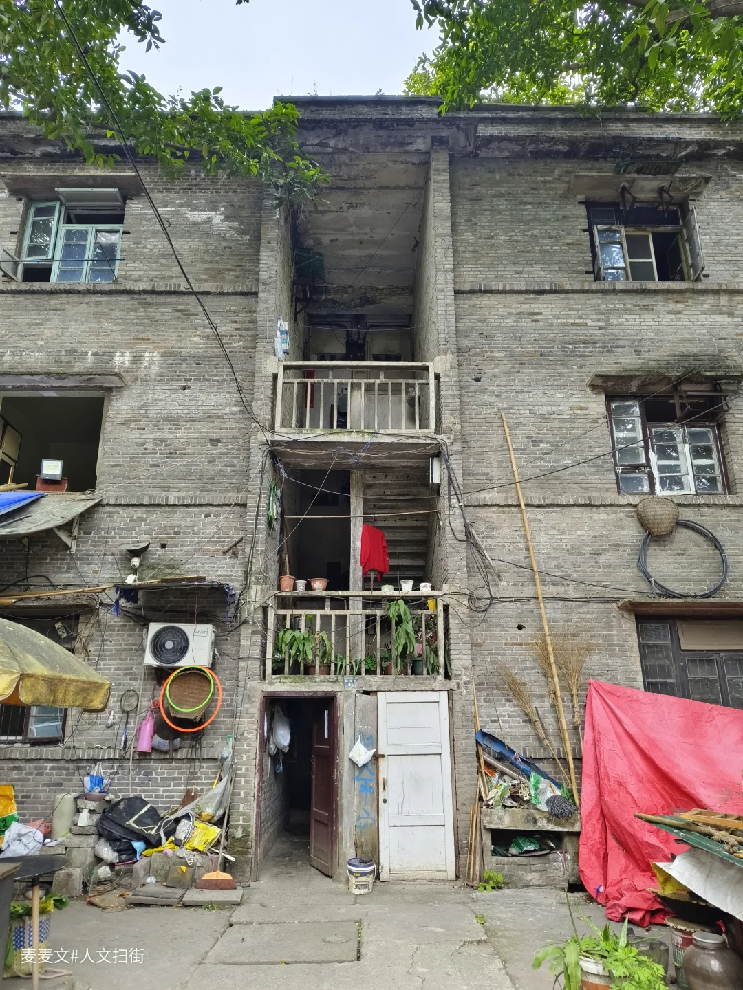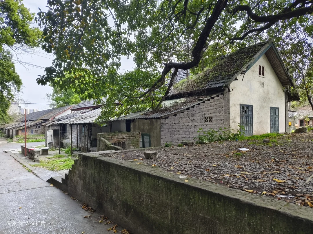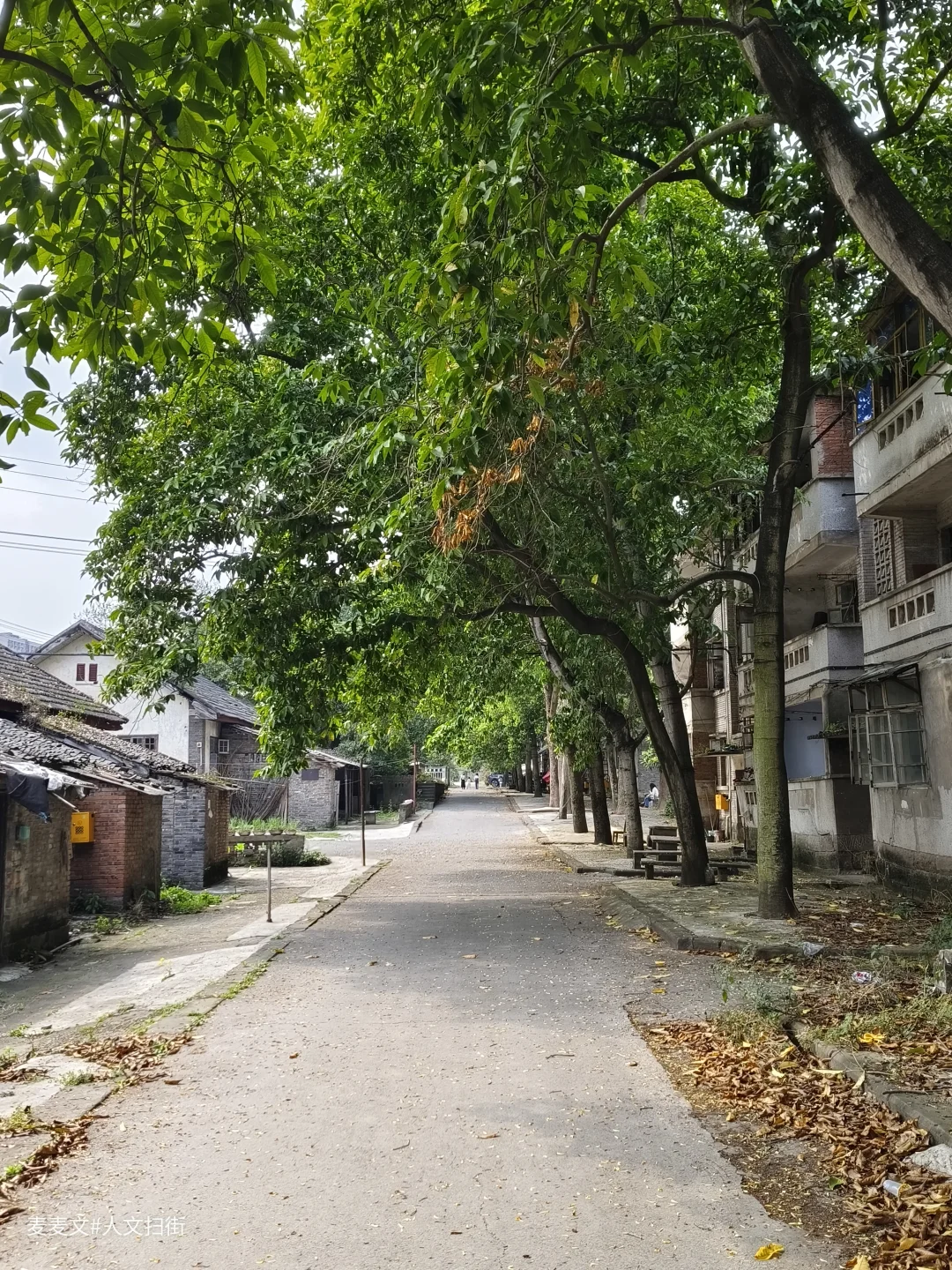 参天的黄葛树遮天蔽日,铺满落叶的老路上,偶尔有打卡拍照的年轻人走过,与慢悠悠扫地的老人擦肩而过,仿佛两个时空在此交汇。蓝底白字的门牌号、缠绕交错的电线、院坝里晾晒的衣物,都还保留着炮校家属区最本真的烟火气,却又透着挥之不去的落寞。