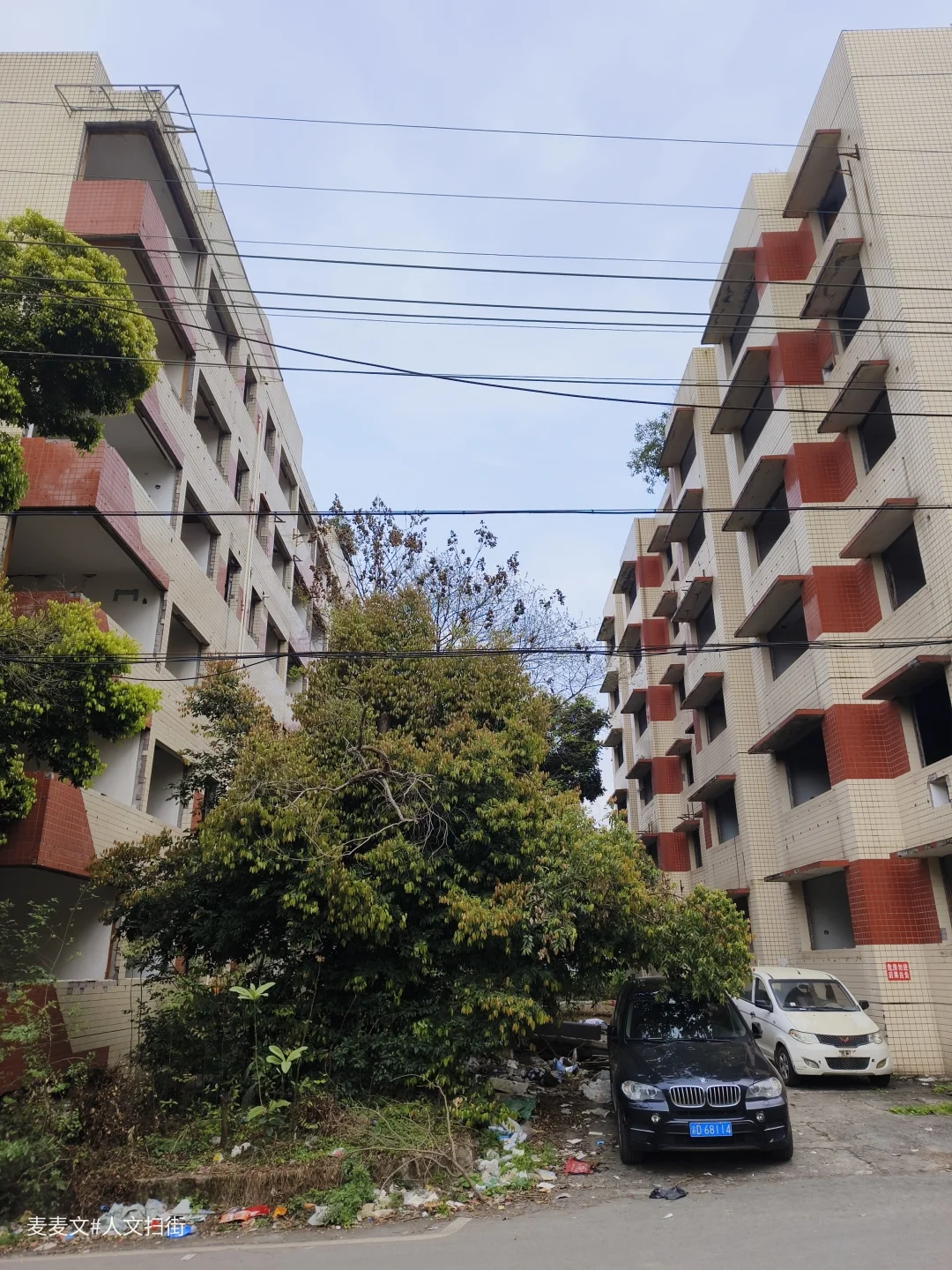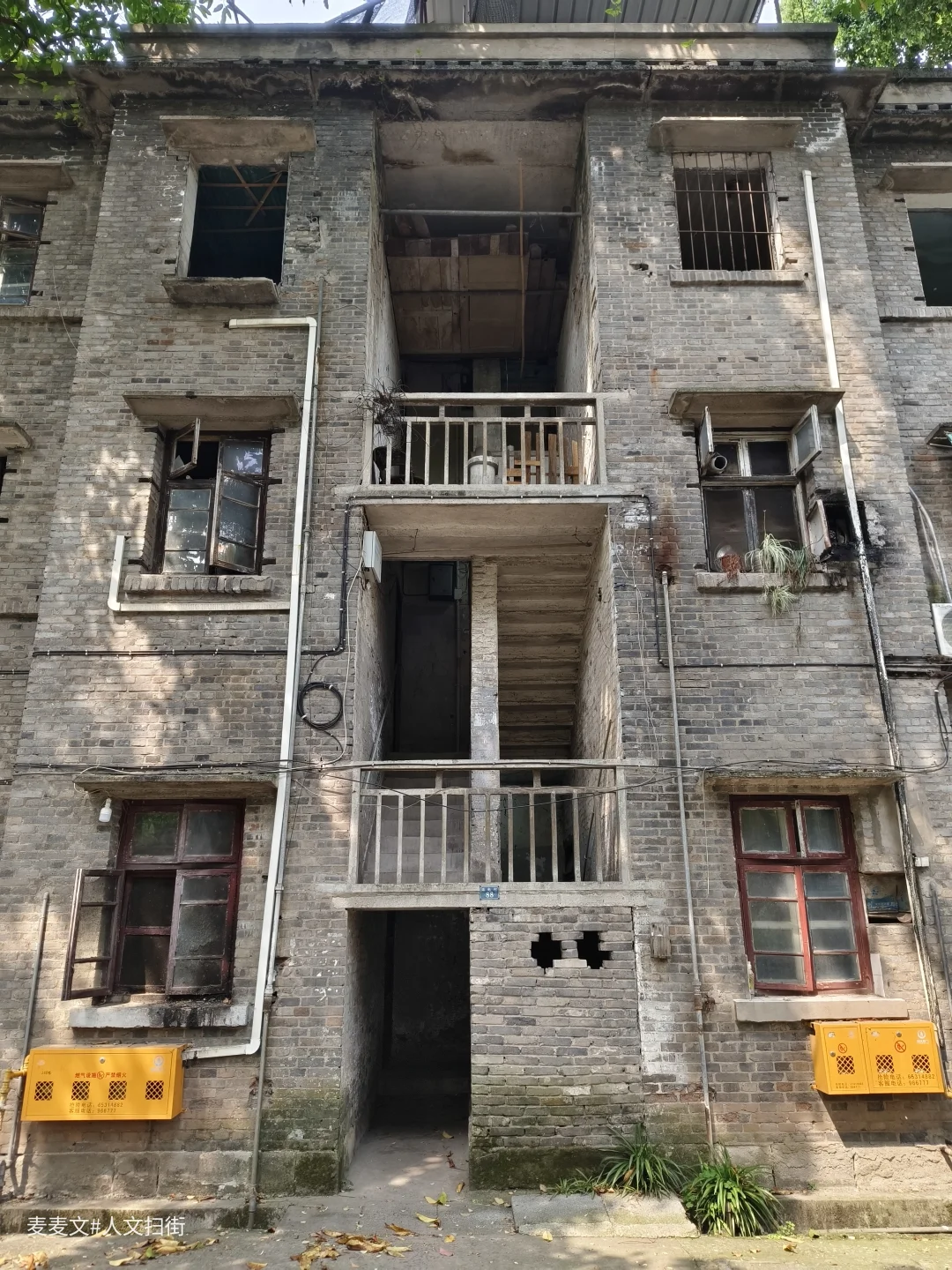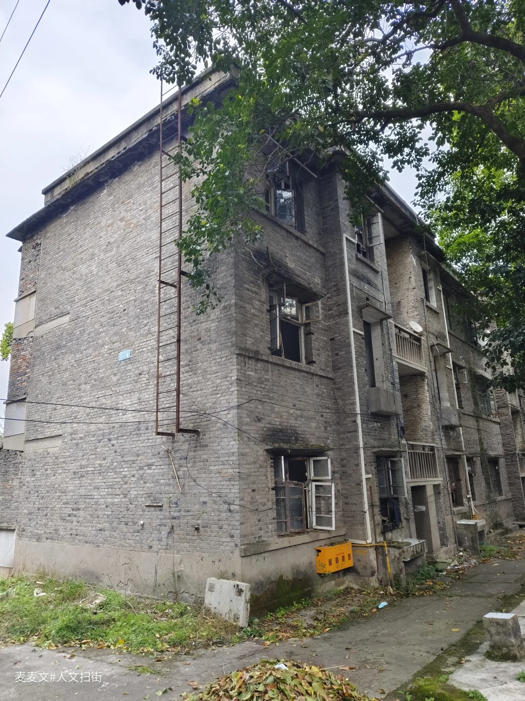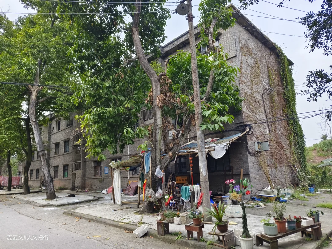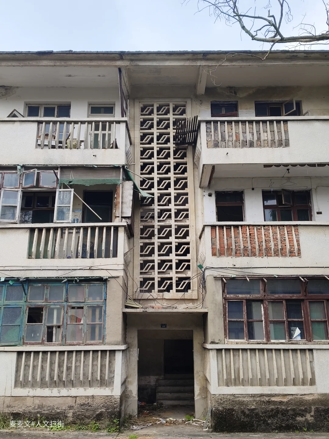 这座三线建设时期的军工家属区,如今大半住宅楼早已人去楼空。斑驳的灰砖楼、褪色的木窗、墙面上模糊的五角星,每一处都刻着岁月的痕迹。苏式老房爬满枯藤,楼道里蛛网密布,只有零星几户还亮着灯,住着不愿离开的退休老职工。