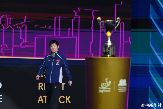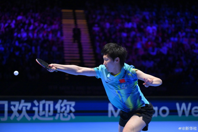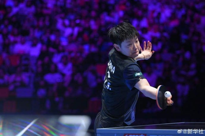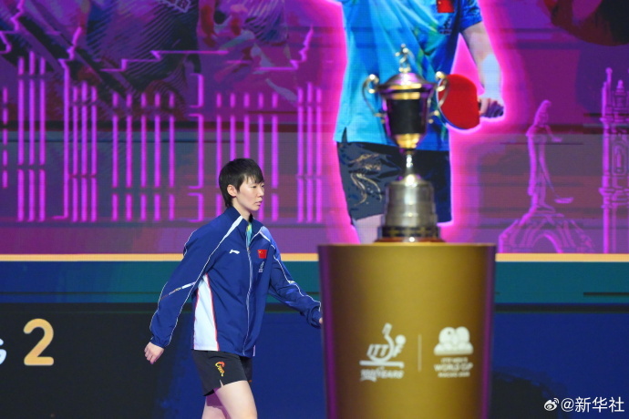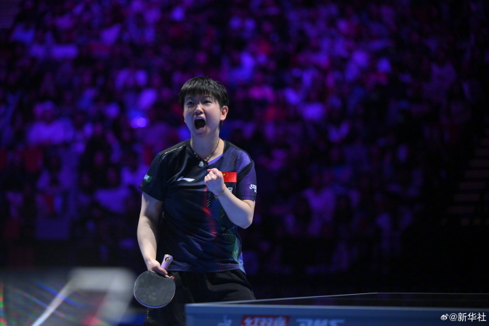 #孙颖莎3连冠#【#孙颖莎获女单冠军#】4月5日,在2026年国际乒联单打世界杯决赛中,战胜队友,实现三连冠。#孙颖莎vs王曼昱# (新华社)
