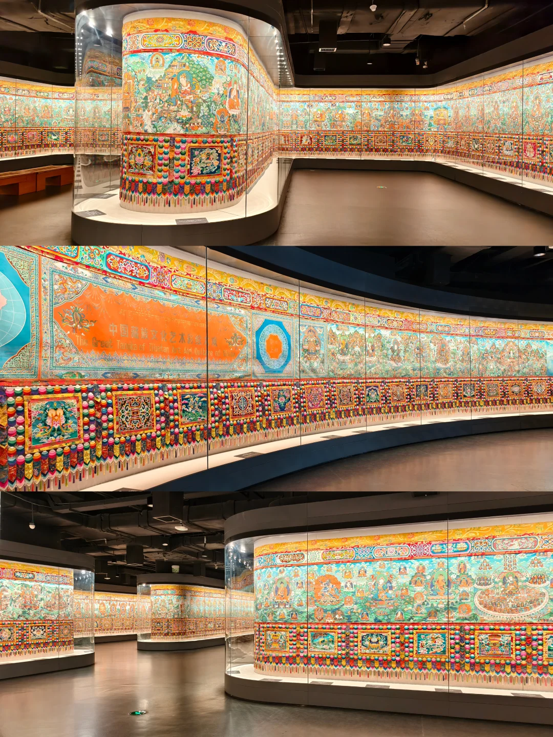 出差时一个人逛的博物馆,整层楼都是唐卡,全场618米,400多名画师耗时27年完成,无任何重复花纹,现场看很惊艳