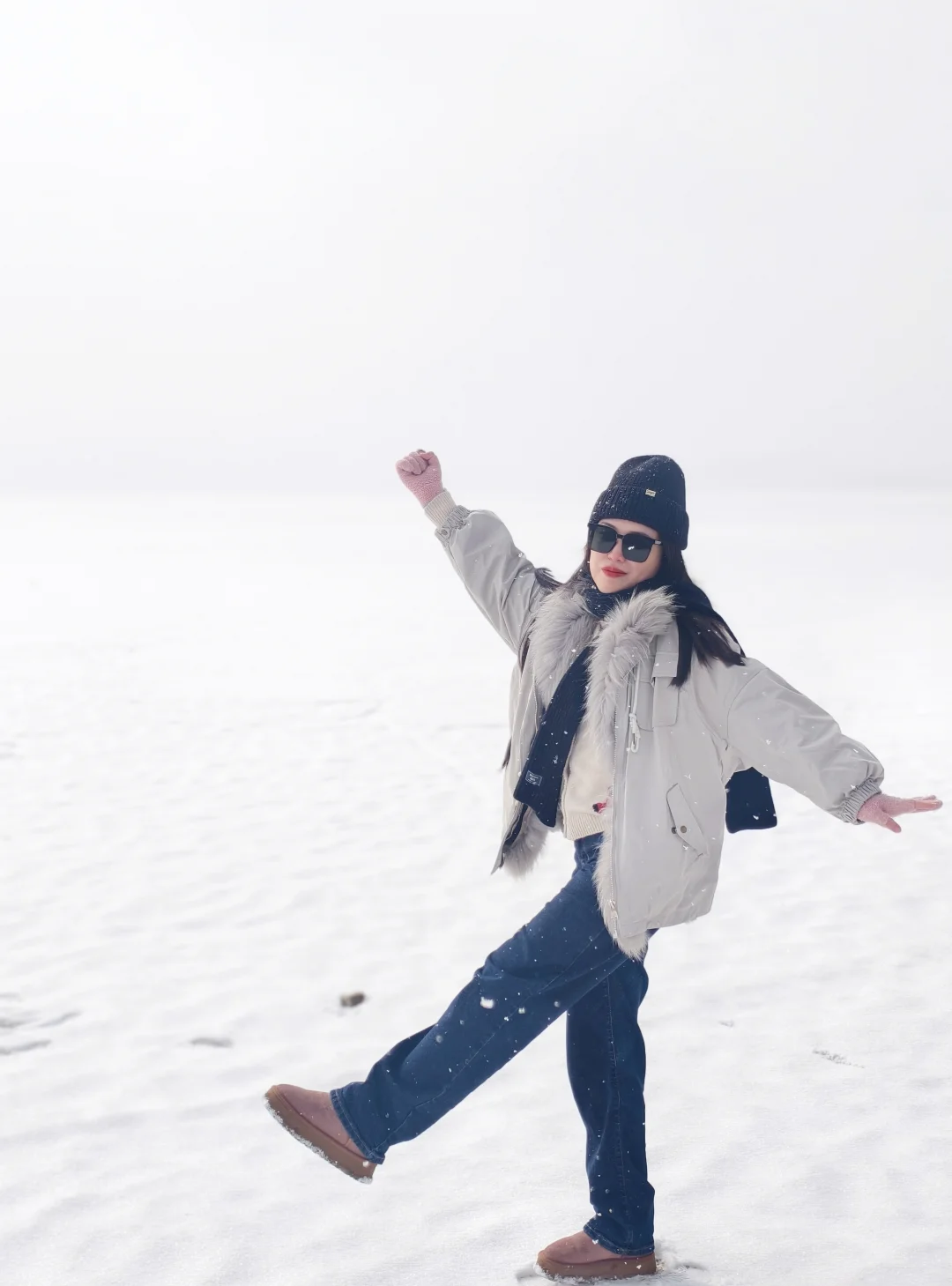 一整个湖面被冰冻住🧊,一望无垠的远处,湖面上就几个团友,静静呆上一会儿也是感叹这样的青海湖绝绝子