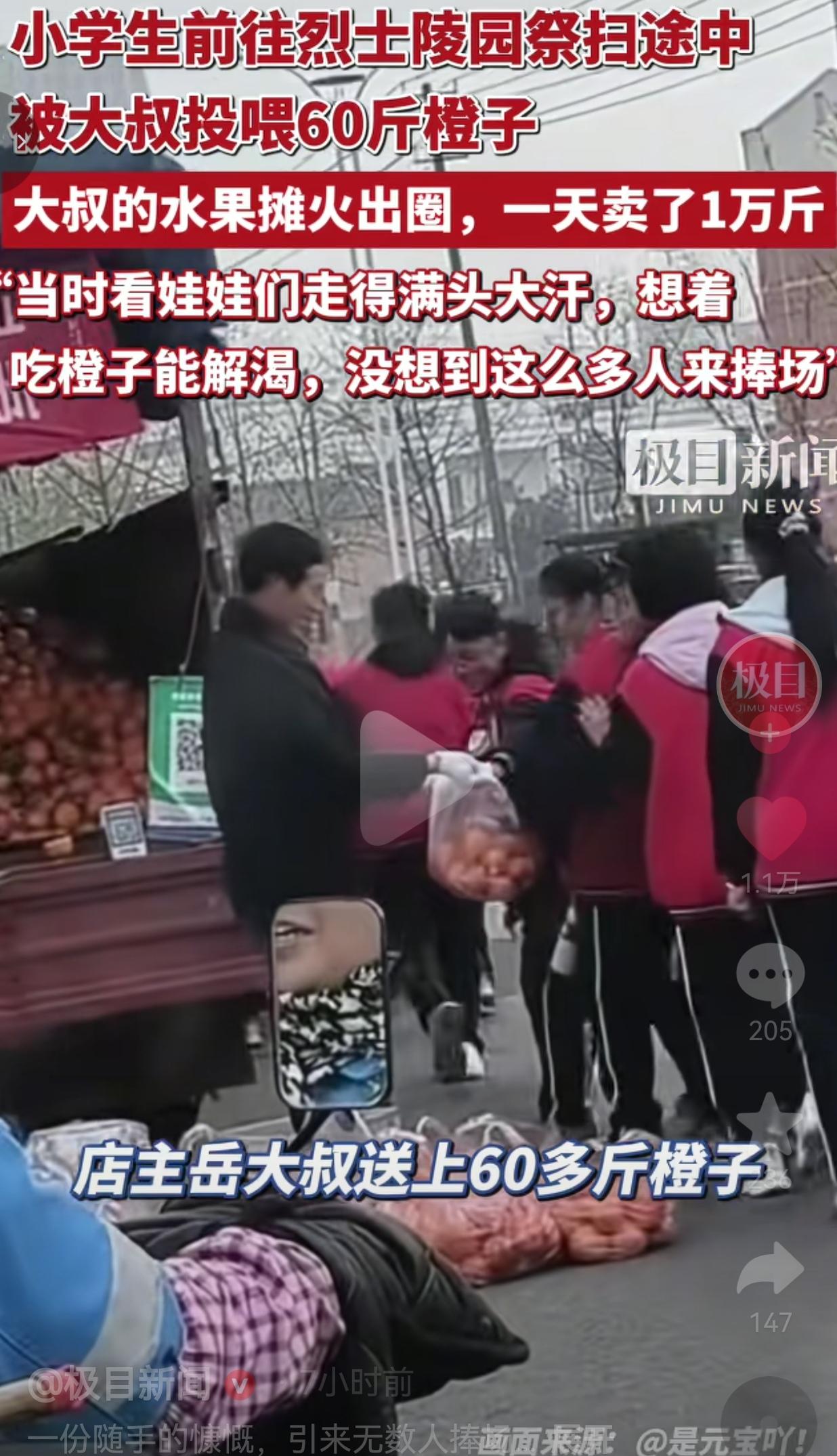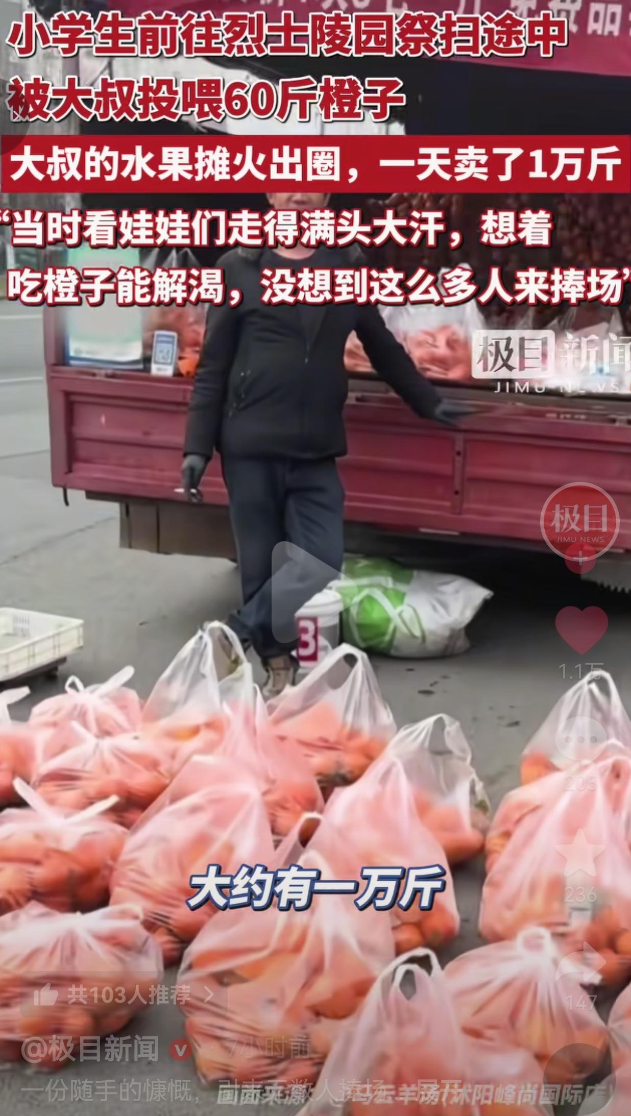 给祭扫小学生免费送60斤橙子!江苏大叔火出圈,一天狂卖1万斤!这才是中国人刻在骨子里的善良!