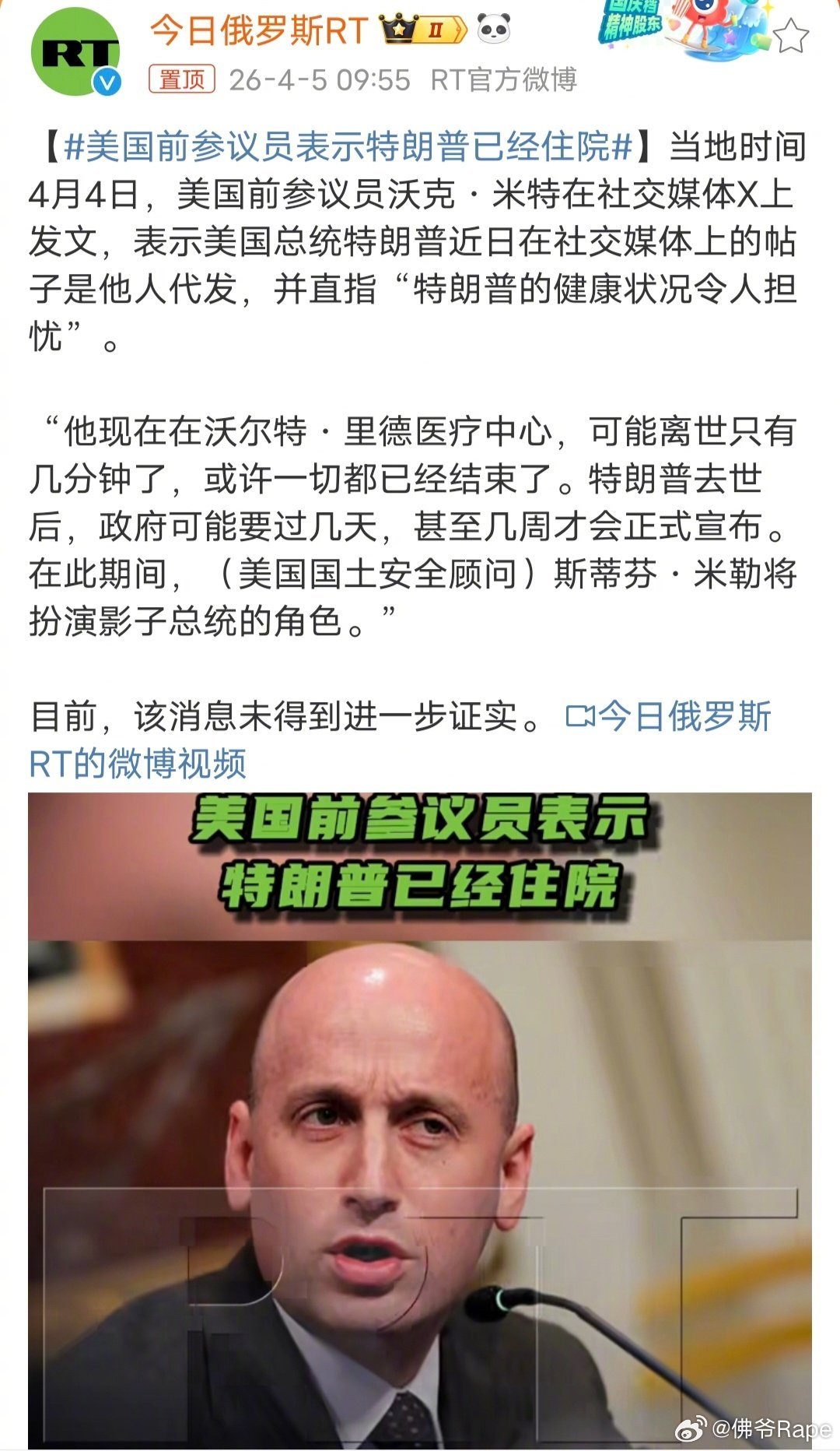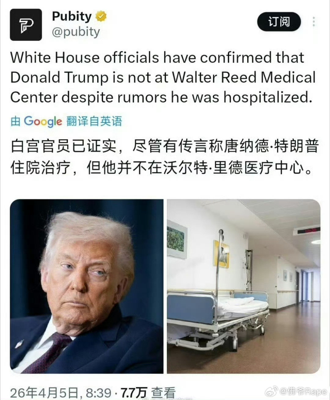 美国前参议员表示特朗普已经住院我靠川普病危?