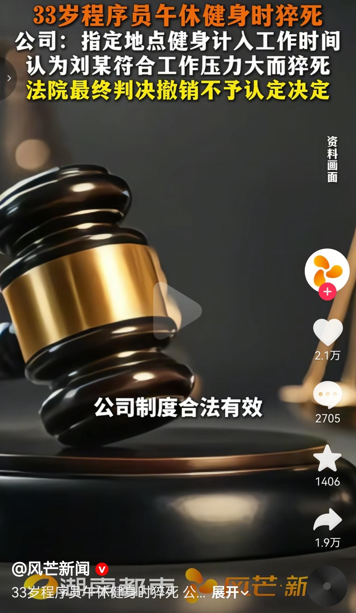 33岁程序员,在公司指定的健身房、计入工作时间的午休时段健身,猝死了!公司主动帮家属申请工伤,人社局直接驳回!最后法院两审,直接撤销不予认定,改判视同工伤!网友:这才是给打工人撑腰的判决!