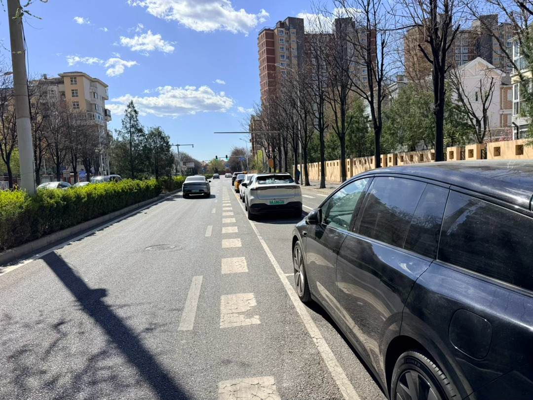 这是一种在路中间的停车位,其他地方比较少见,我经常看到有右转车在后面排队,泊入的时候也比较造堵,由于前后有路口,所以车位会比靠右边的少,但是偶尔遇到违停在靠前的,直接停路口了,看上去就是一排车在排队