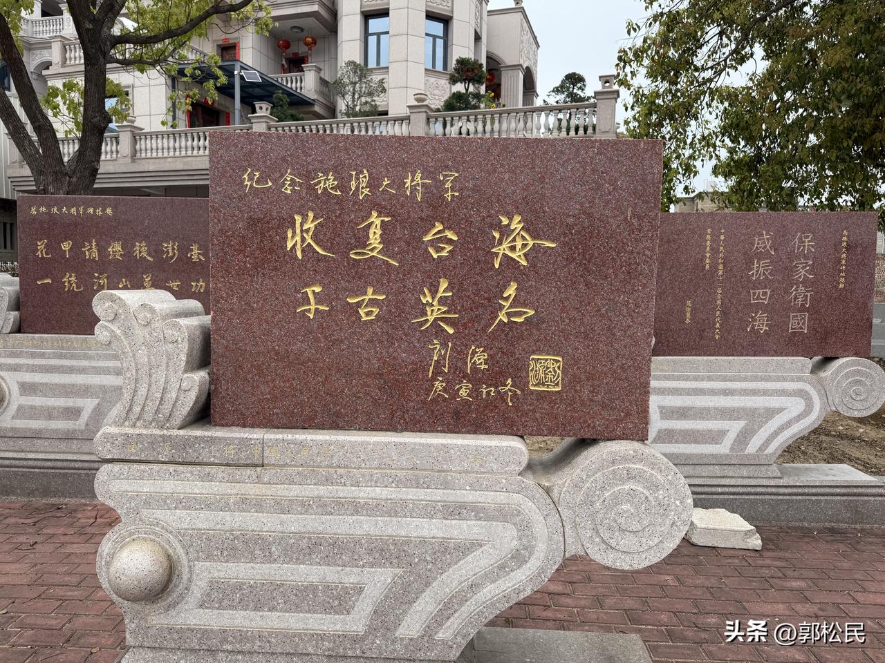 泉州,顺便去看了一下施琅纪念馆。 门前的广场上,有许多高级将领的题词碑。 施